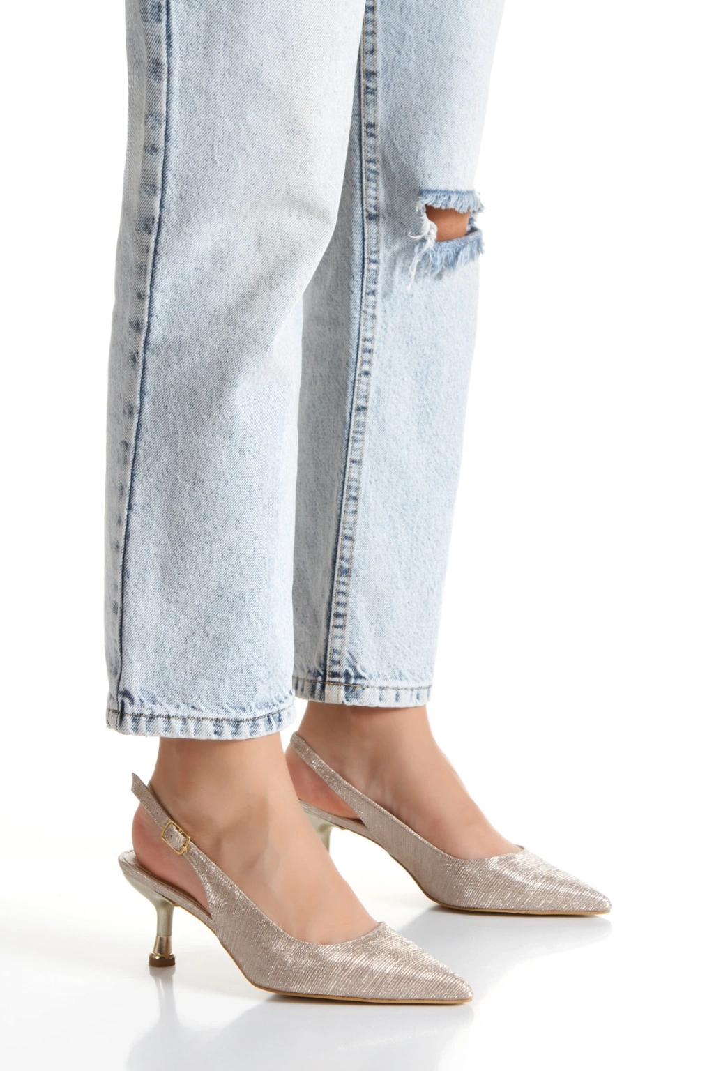 Arkası Açık Sivri Burunlu Şık Topuklu Abiye Ayakkabı Gold