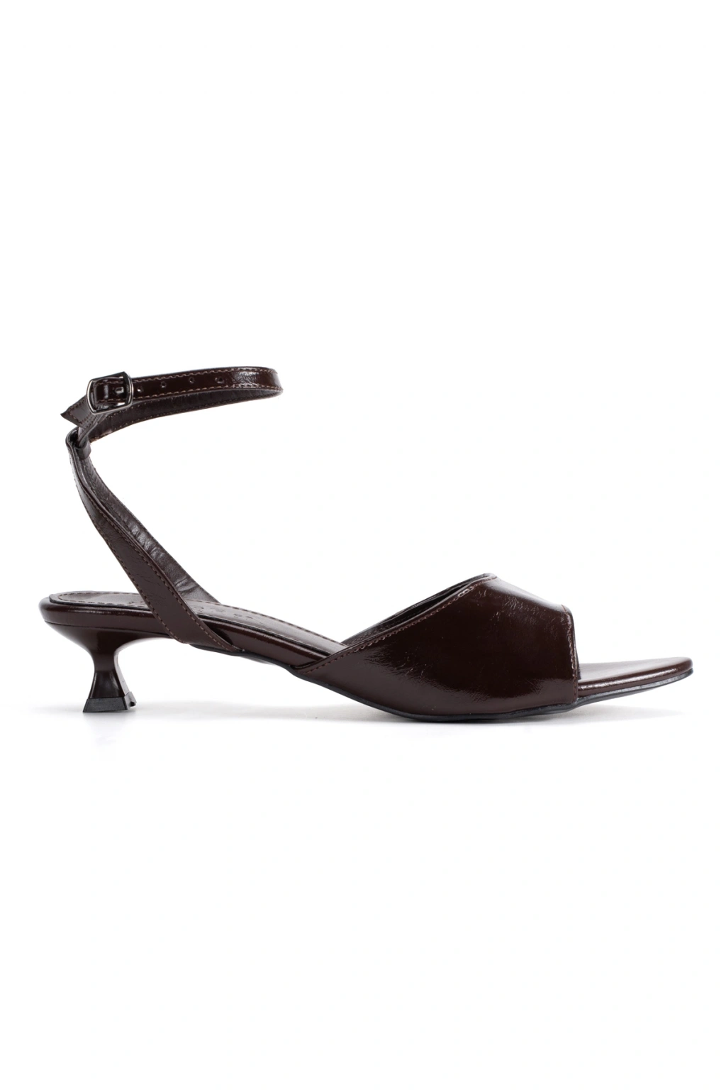 Kahverengi Kadın İnce Bantlı Bilekten Bağlamalı Kısa Topuklu Ayakkabı