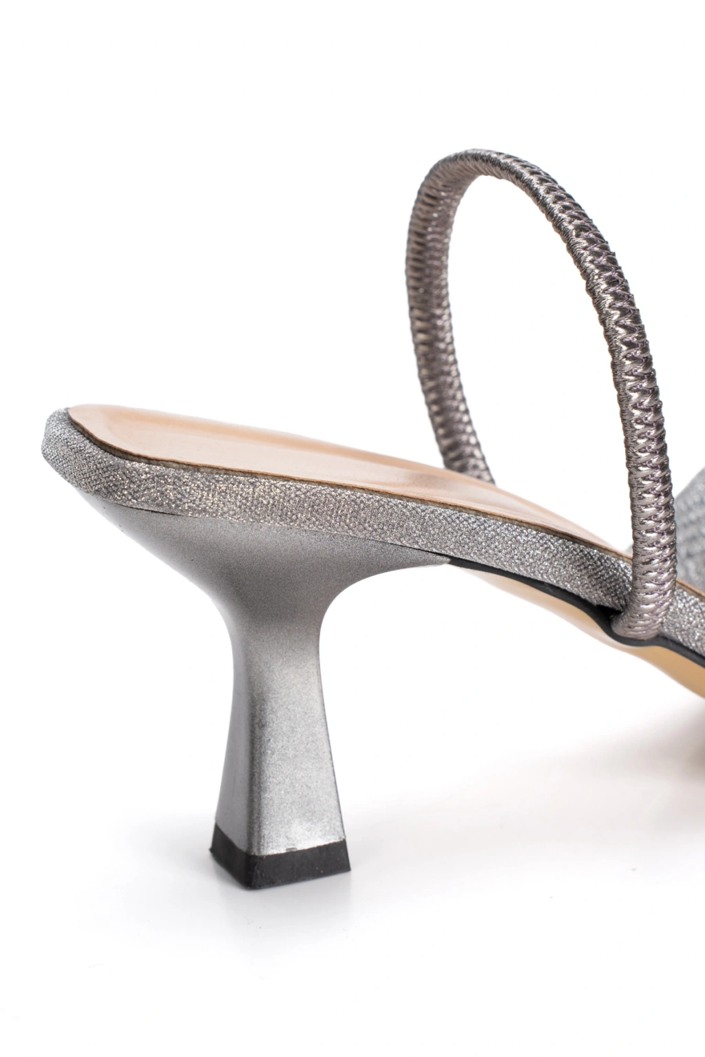 Kadın Platin Şeffaf Detaylı Parıltılı Arkası Açık Abiye Ayakkabı