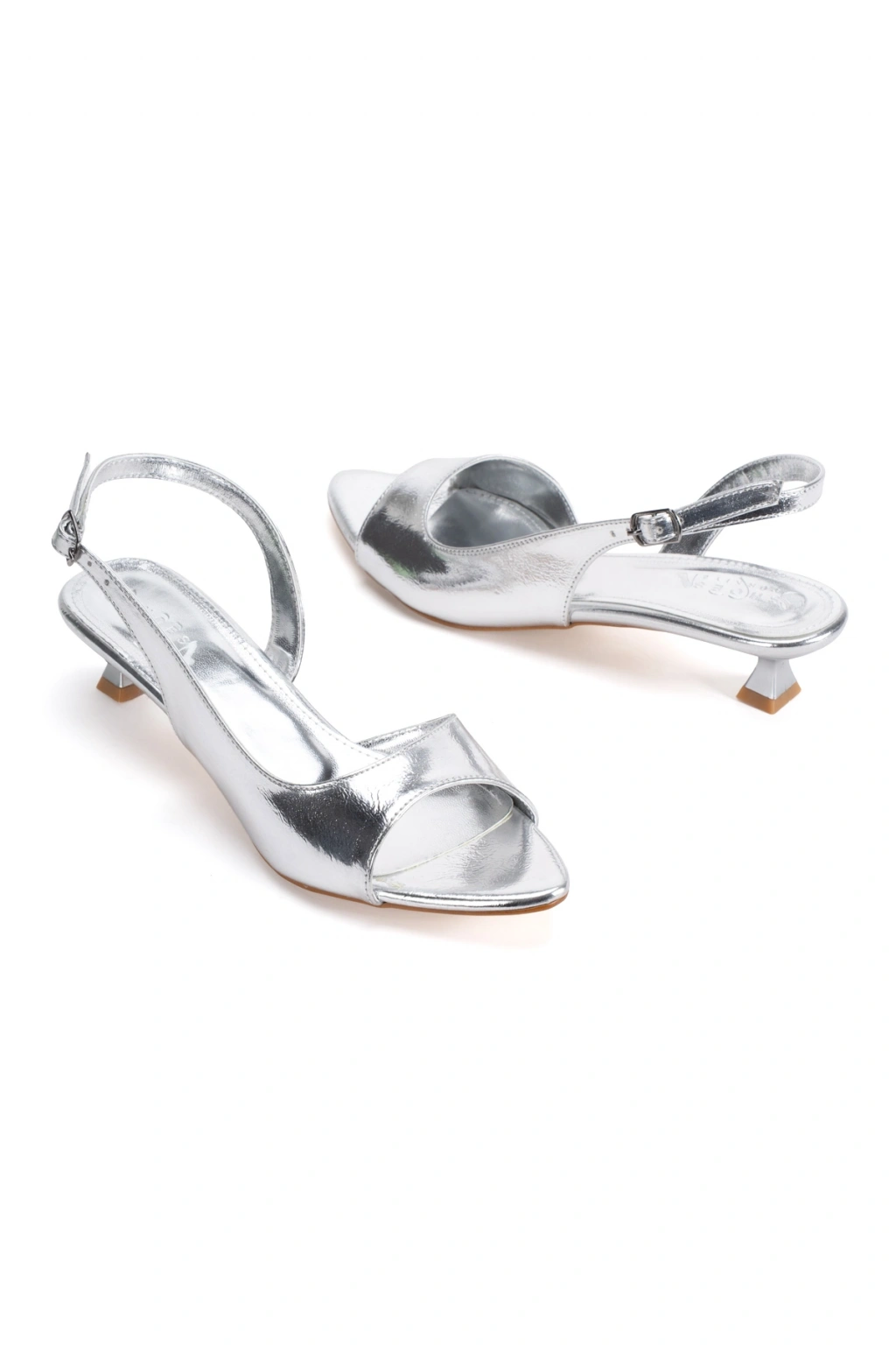 Kadın Arkası Açık Günlük Alçak Topuklu Ayakkabı Gümüş