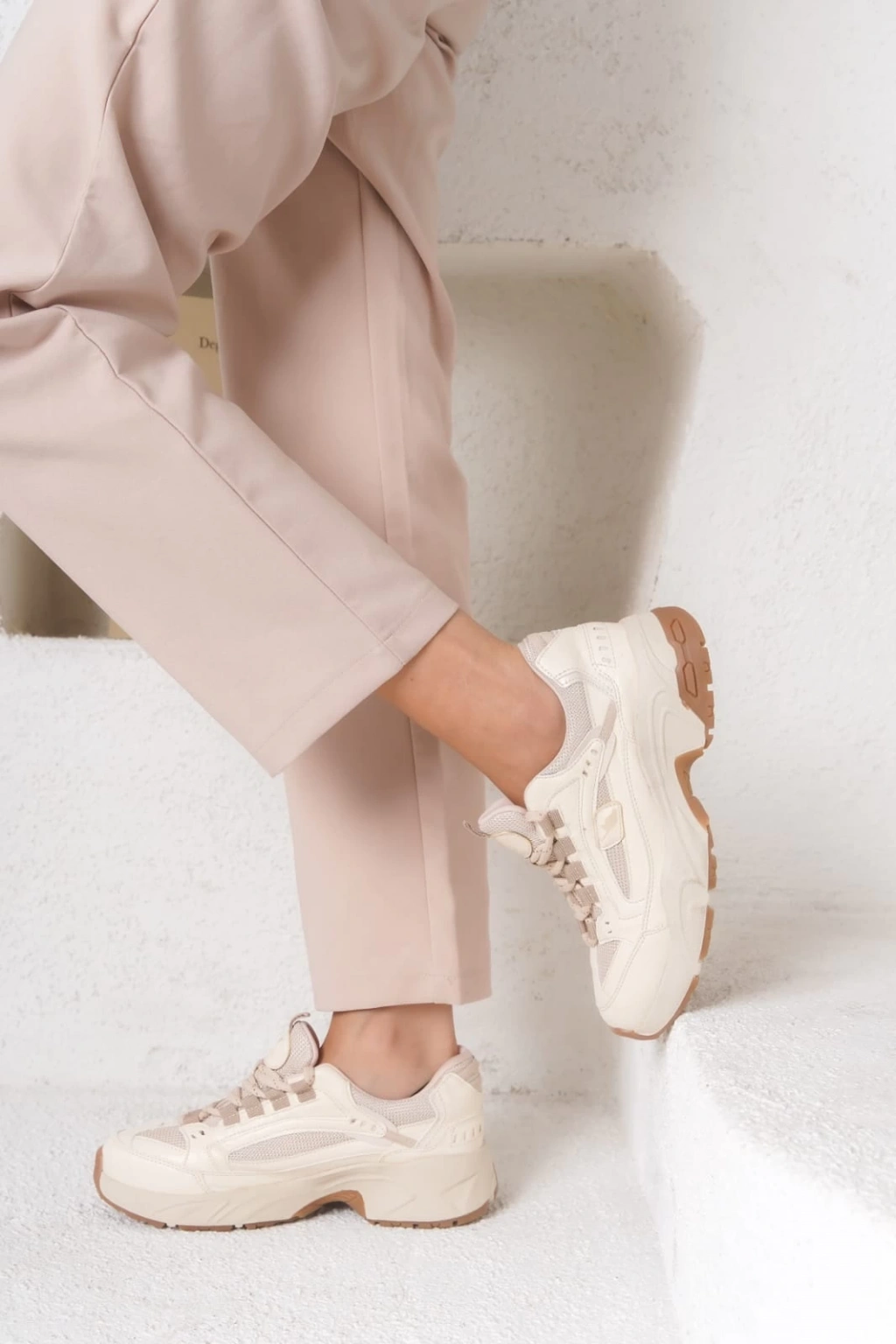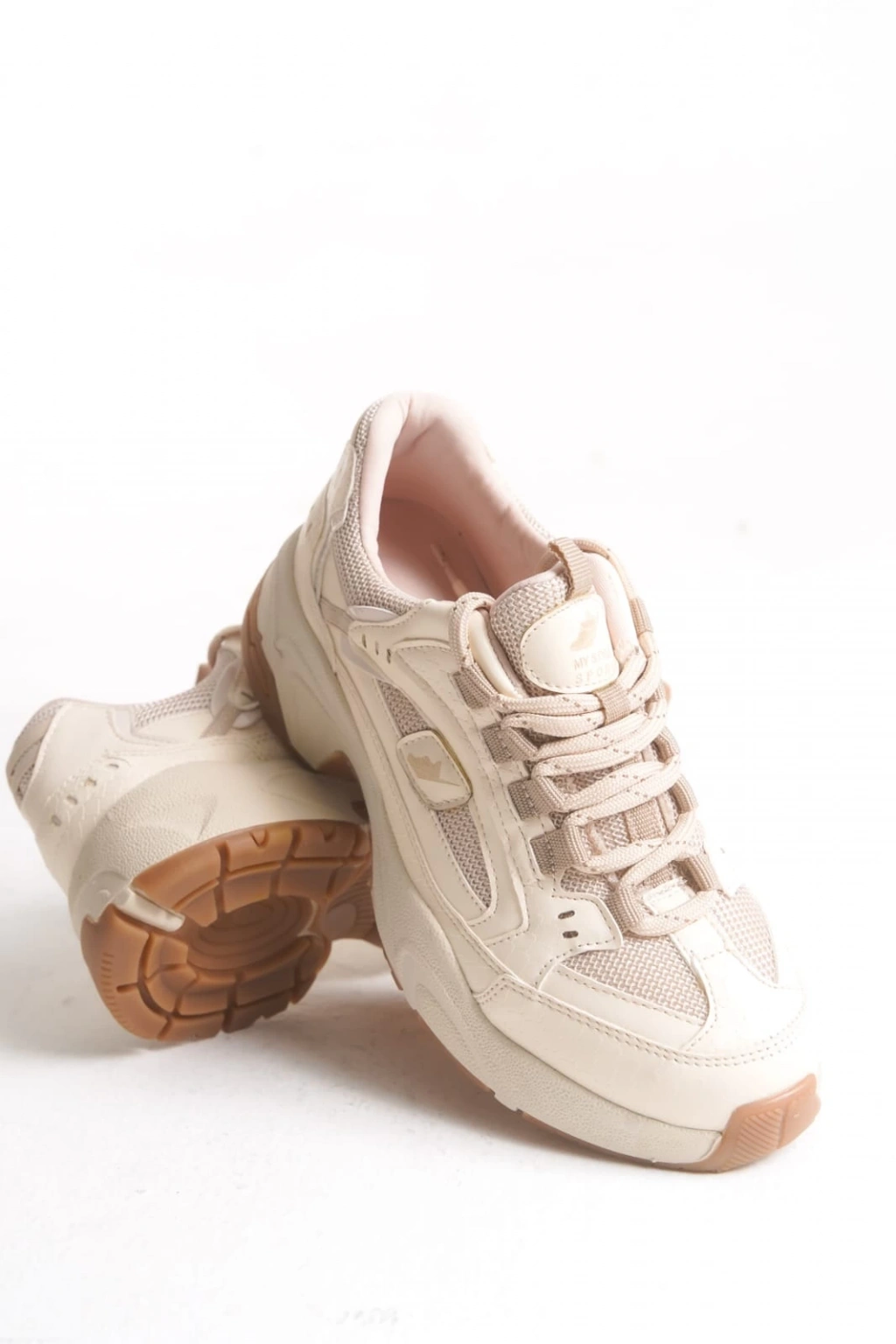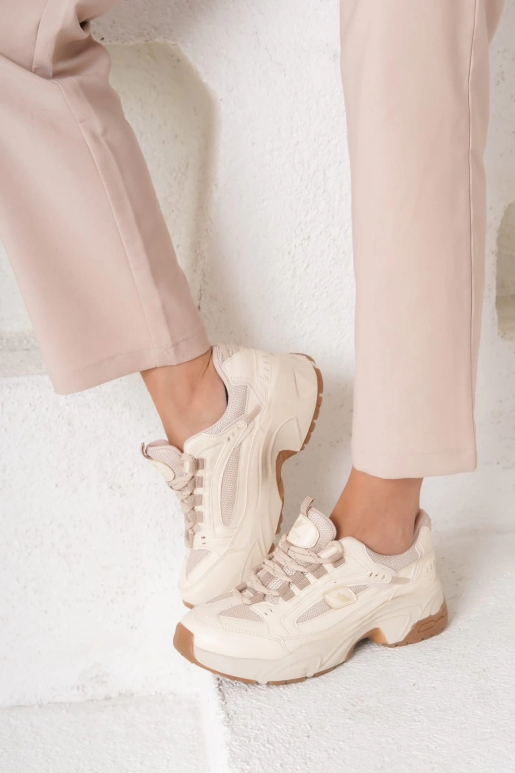 Kadın Bej Yumuşak Tabanlı Spor Ayakkabı