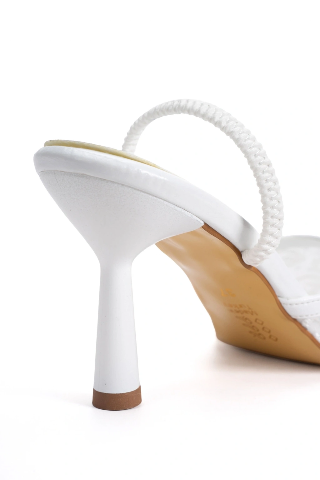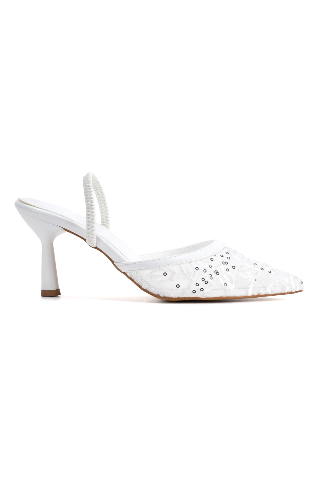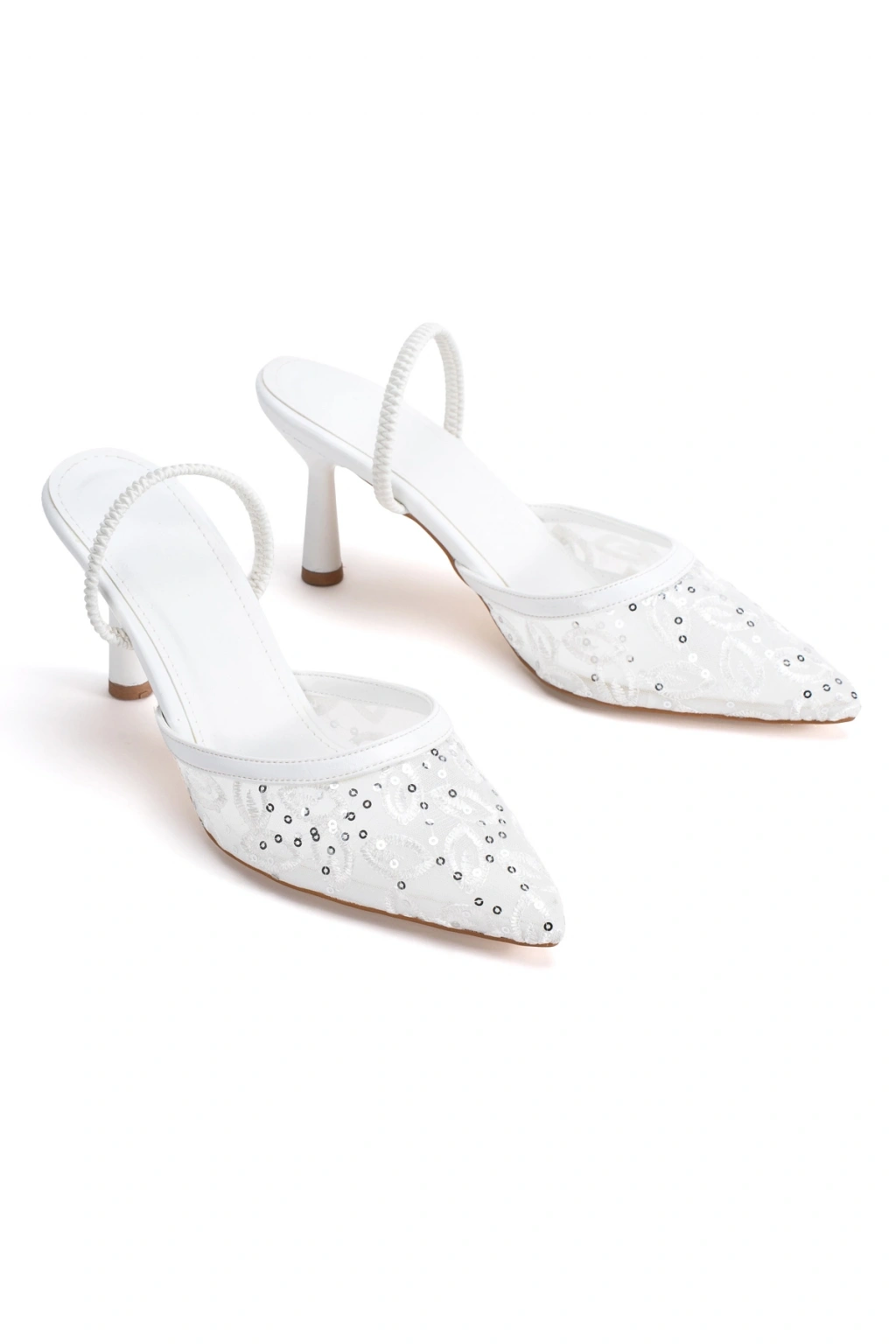 Kadın Beyaz Taşlı ve Nakışlı Şeffaf Görünümlü Sivri Burun Davet Ayakkabısı