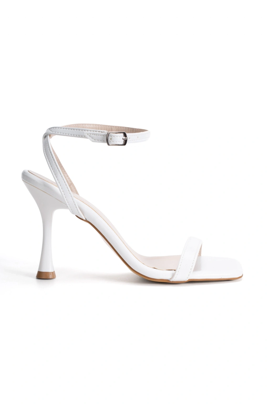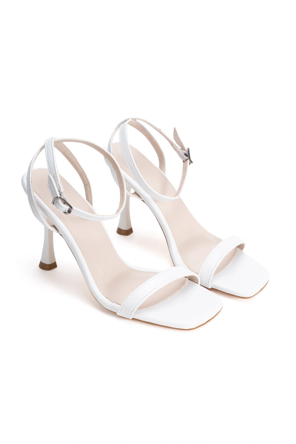Kadın Beyaz Tek Bantlı Kare Burun İnce Topuklu Ayakkabı