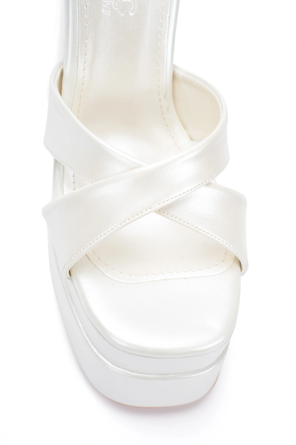 Kadın Çift Kat Çapraz Bant Platformlu Gelin Ayakkabısı