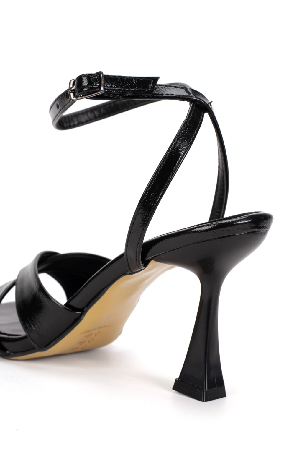 Tek Bantlı Tarz Topuklu Özel Üretim Yazlık Ayakkabı Siyah Rugan