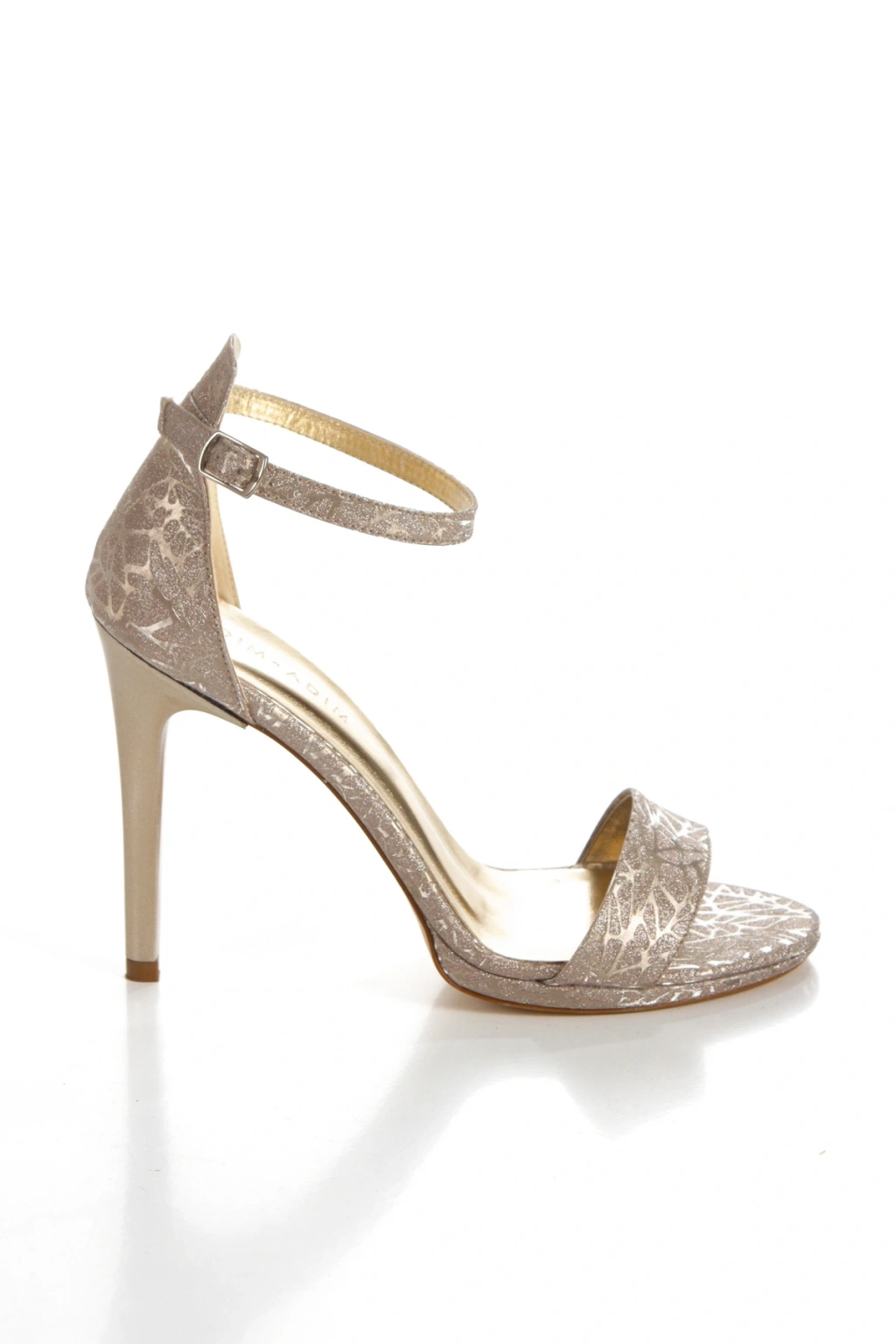 Kadın Altın Yüksek Topuklu Özel Malzemeli Tek Bant Abiye Ayakkabı