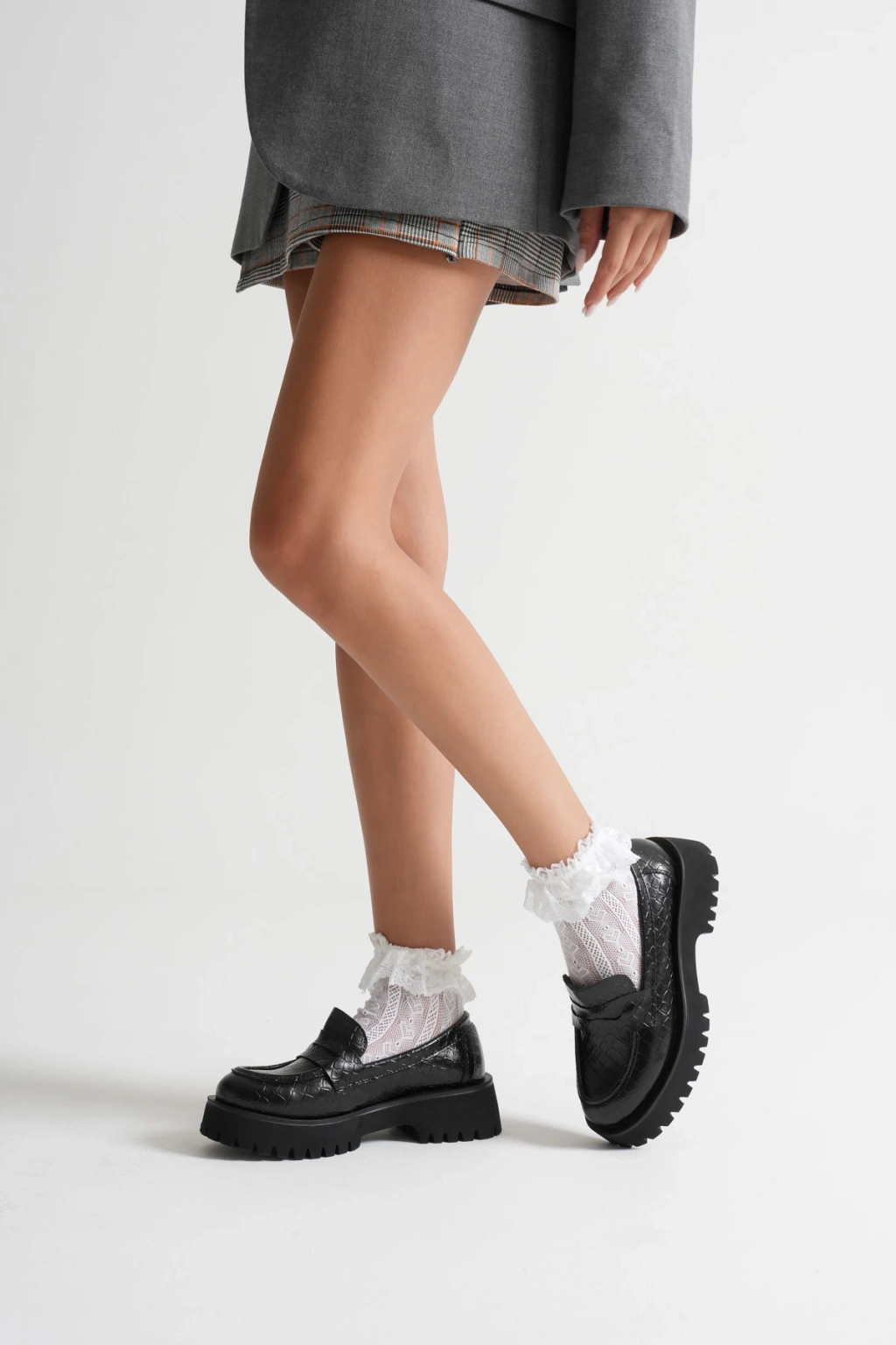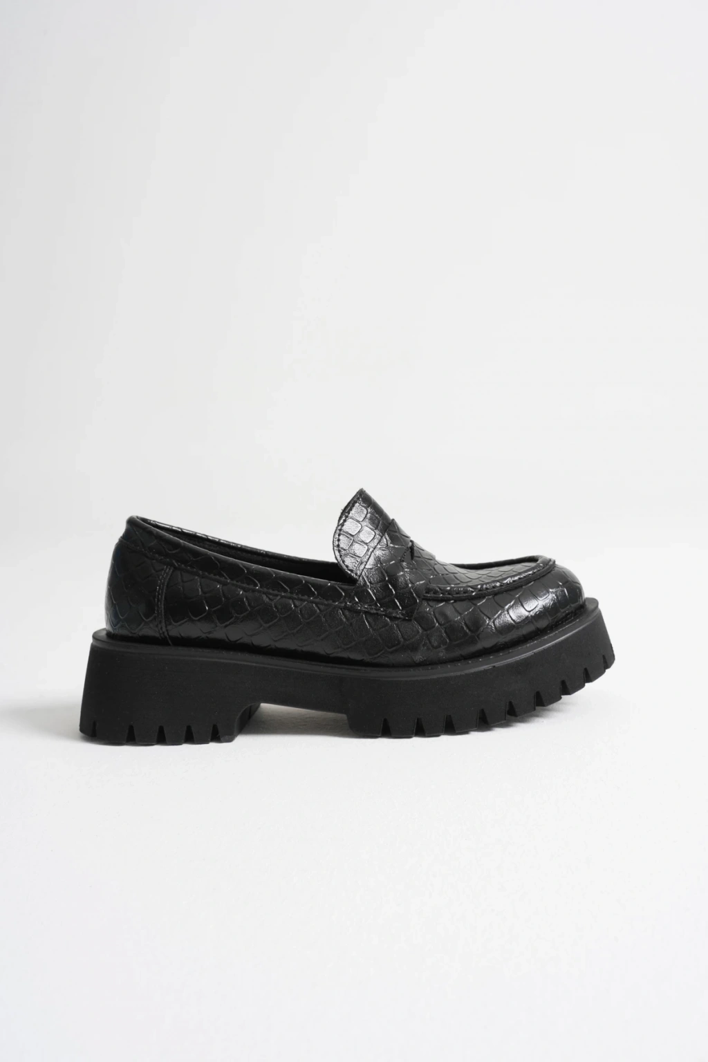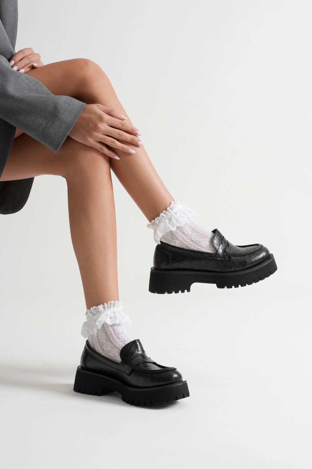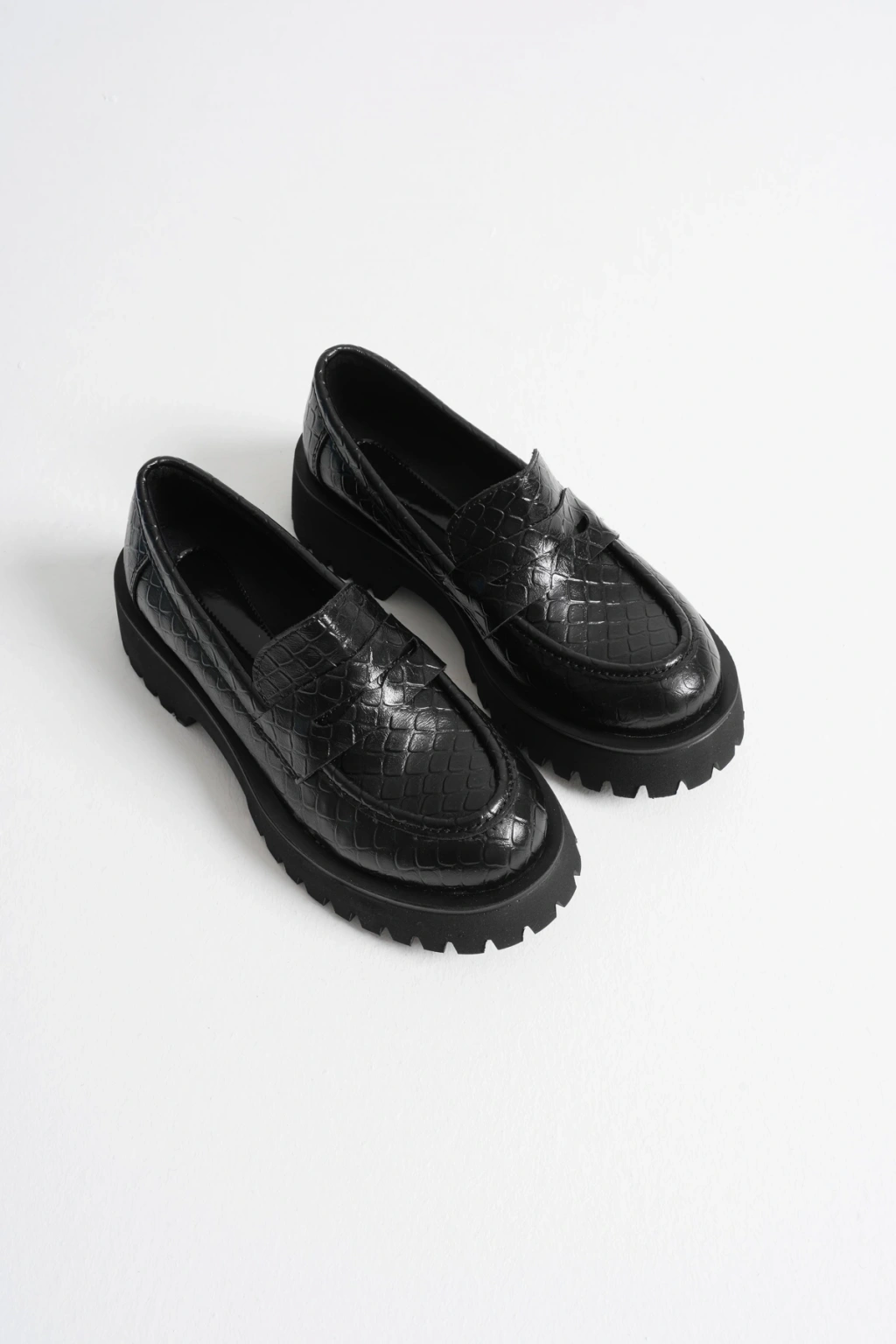 Kadın Günlük Rahat Loafer Siyah Kroko
