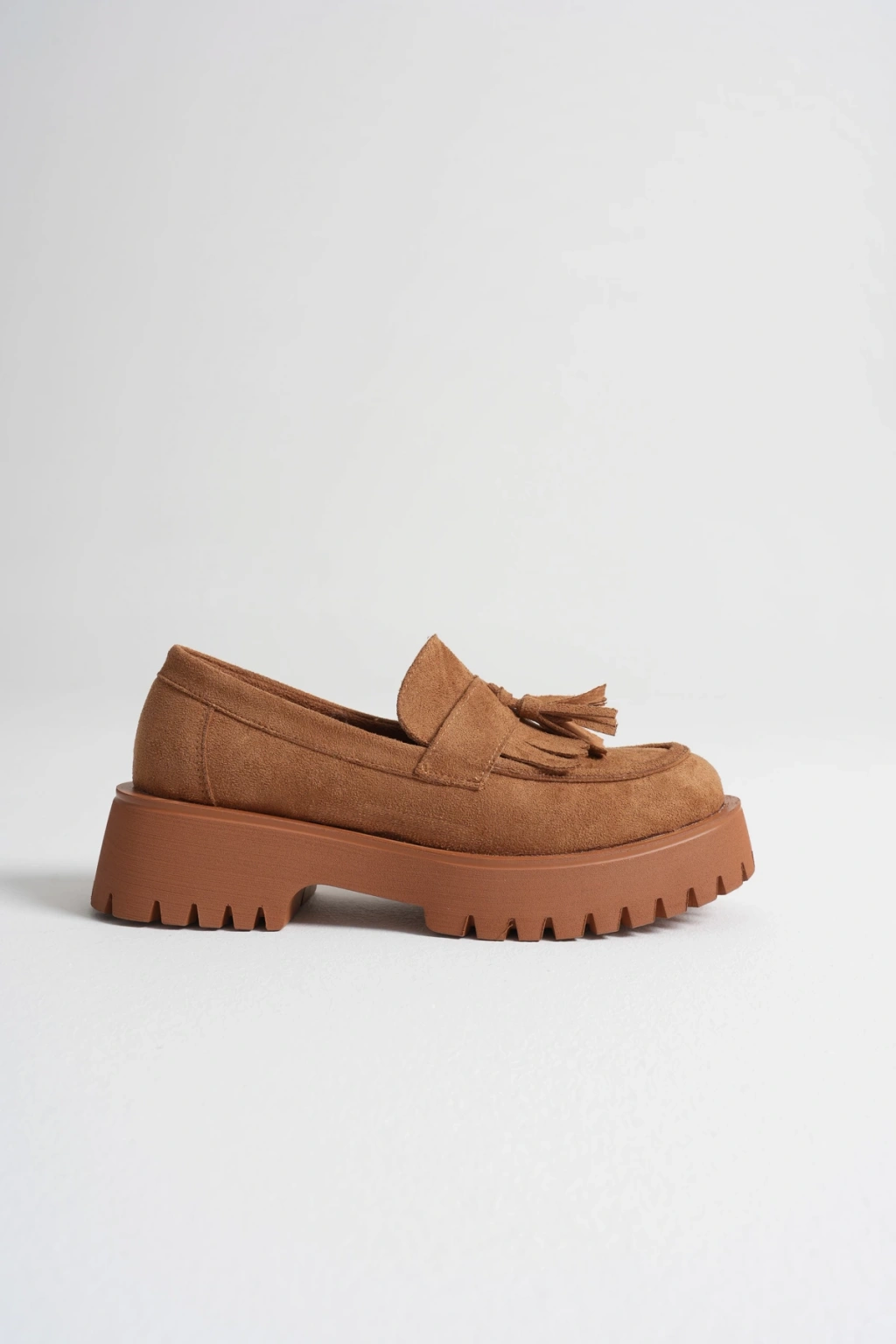 Kadın Günlük Rahat Püsküllü Loafer Taba Süet