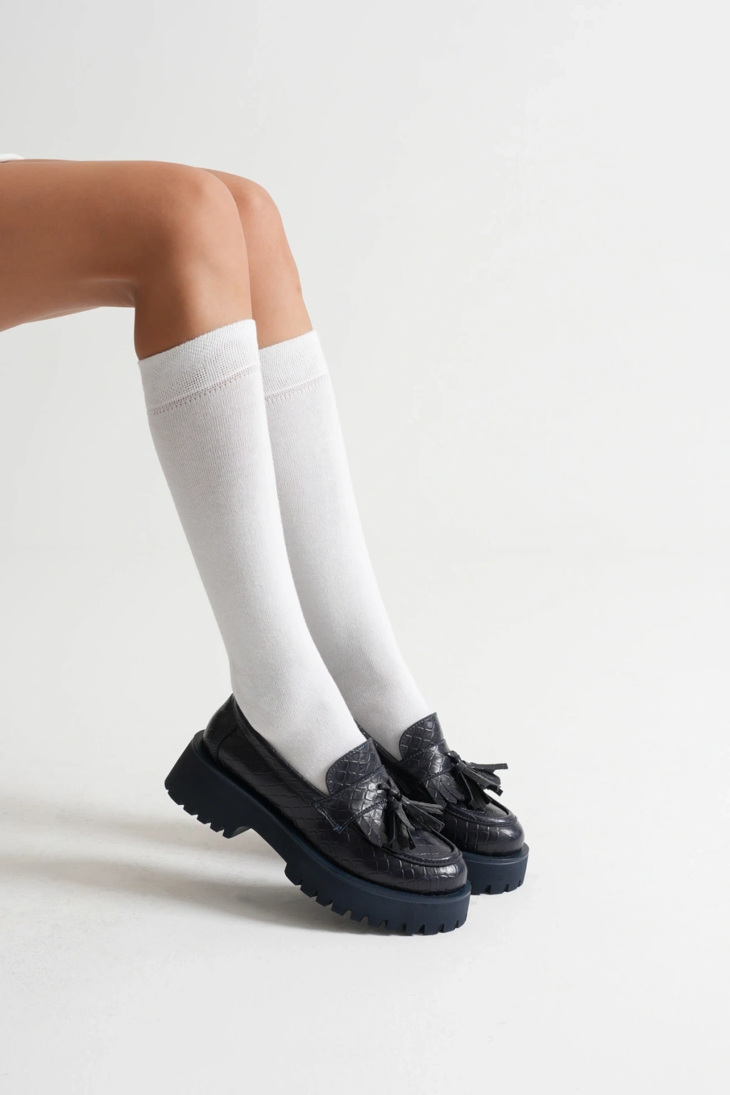 Kadın Günlük Rahat Püsküllü Loafer Siyah Kroko