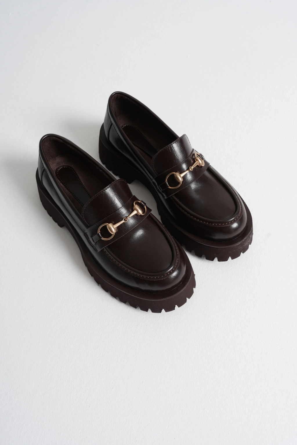 Kadın Günlük Rahat Tokalı Loafer Kahverengi