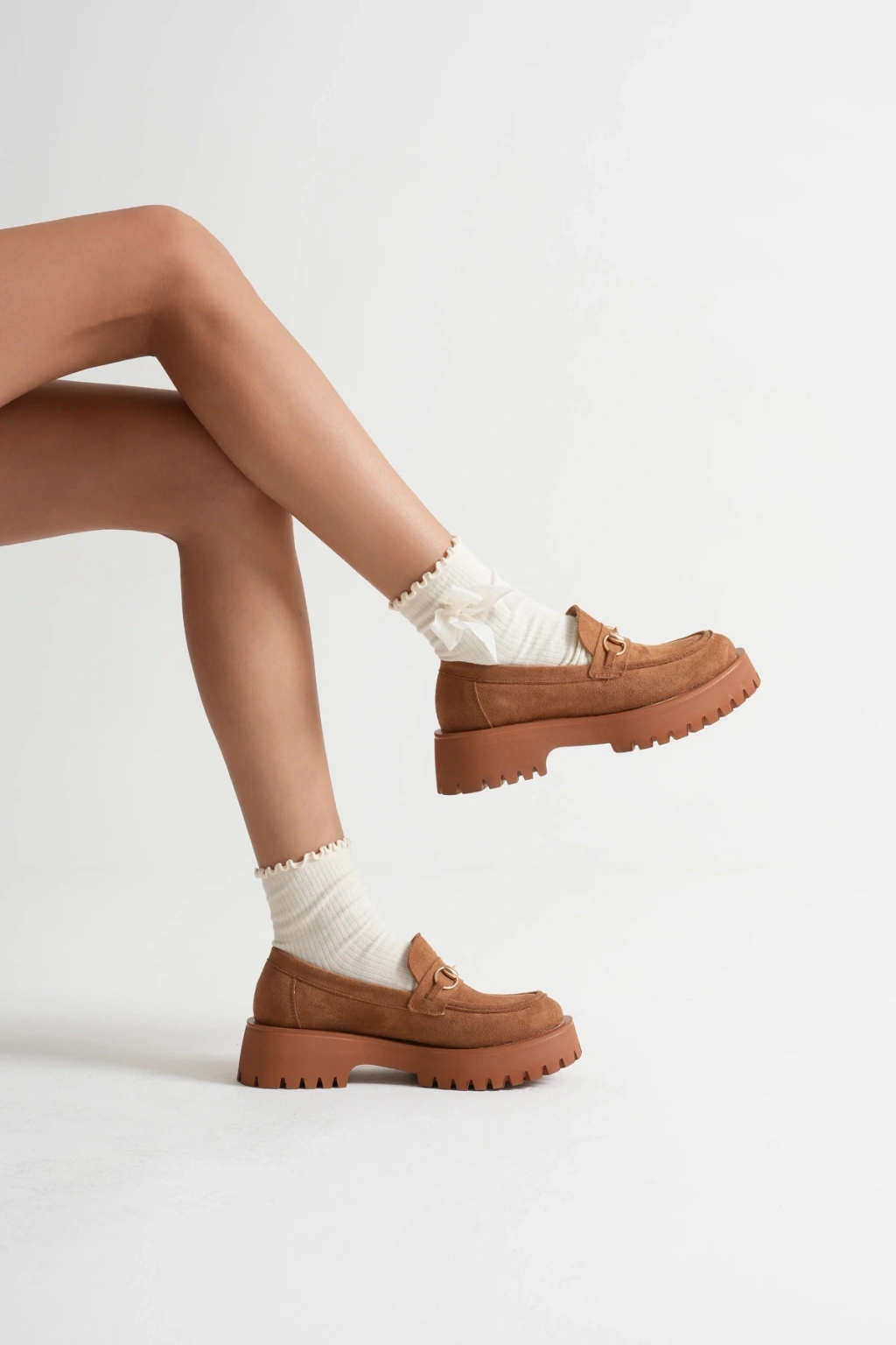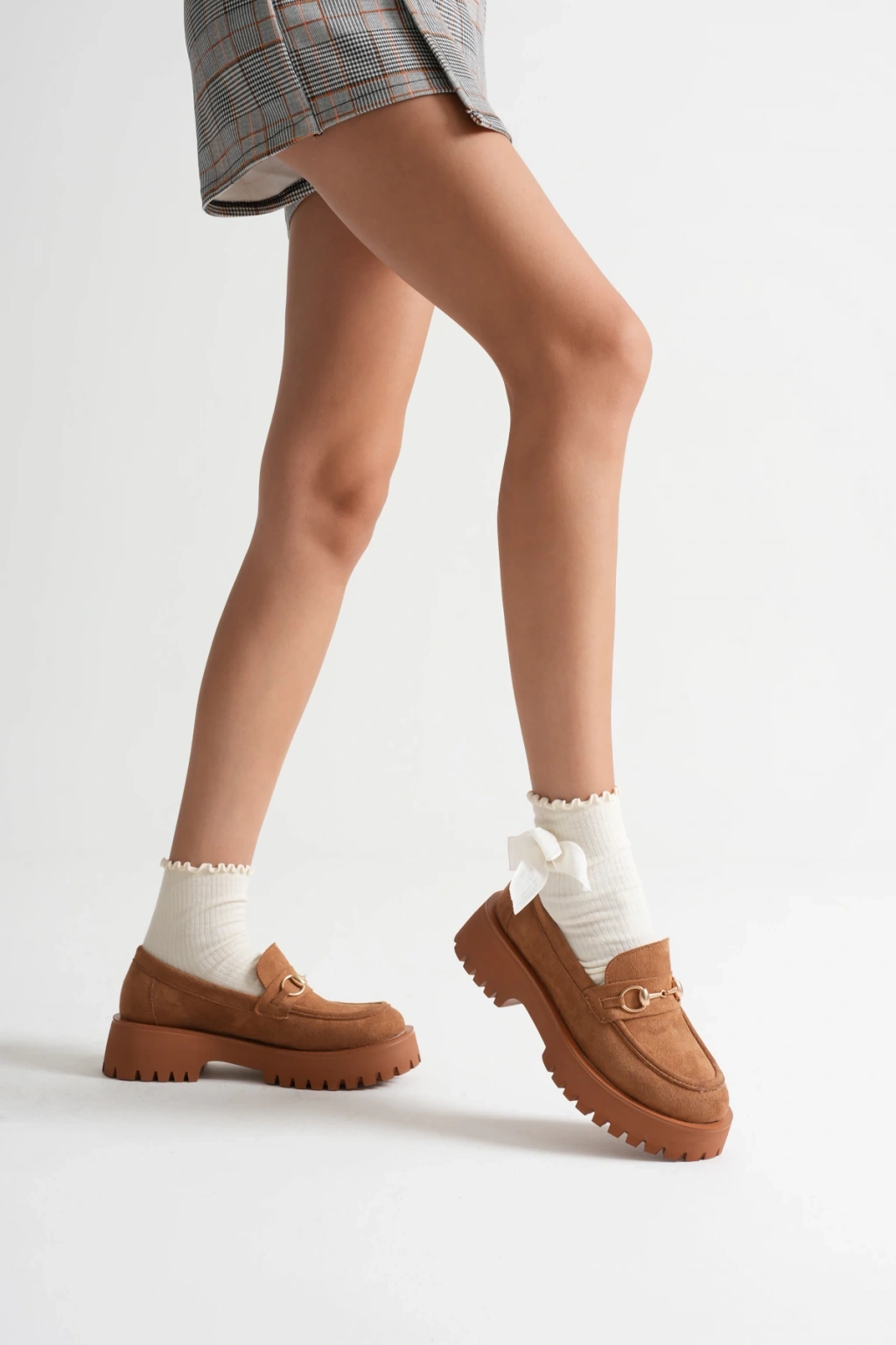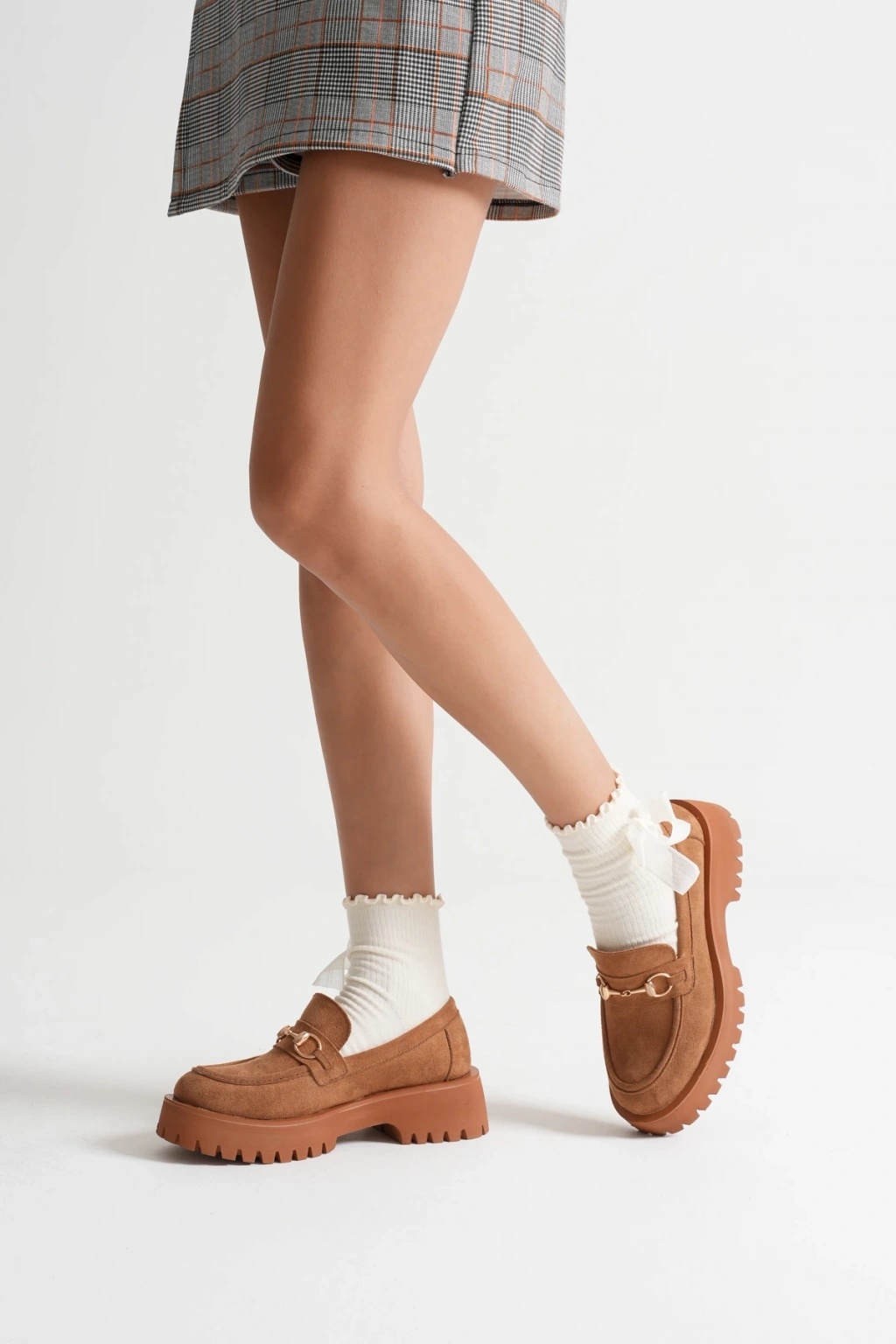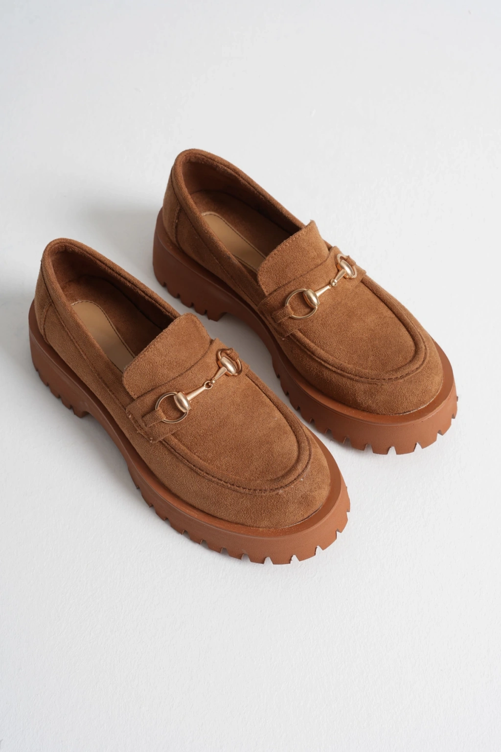 Kadın Günlük Rahat Tokalı Loafer Taba Süet