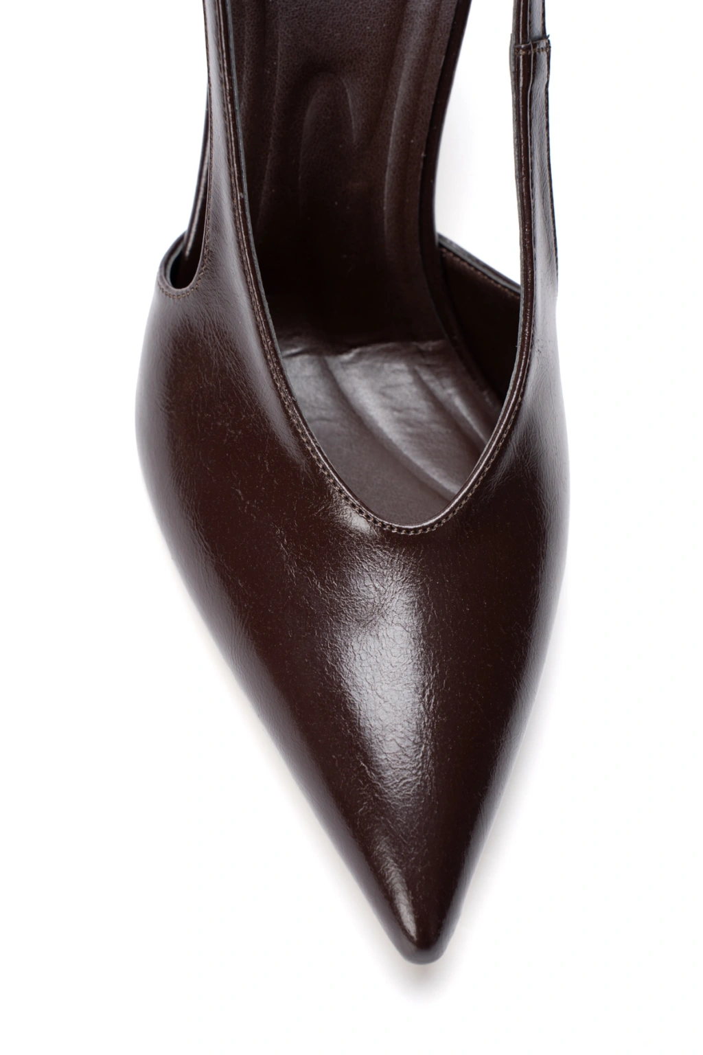 Kadın Hakiki Deri Görünümlü Sivri Burunlu Ayakkabı Kahverengi