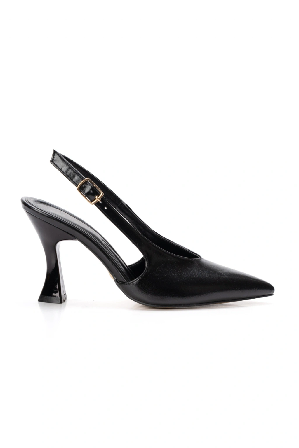 Kadın Hakiki Deri Görünümlü Tokalı Sivri Burunlu Ayakkabı Siyah
