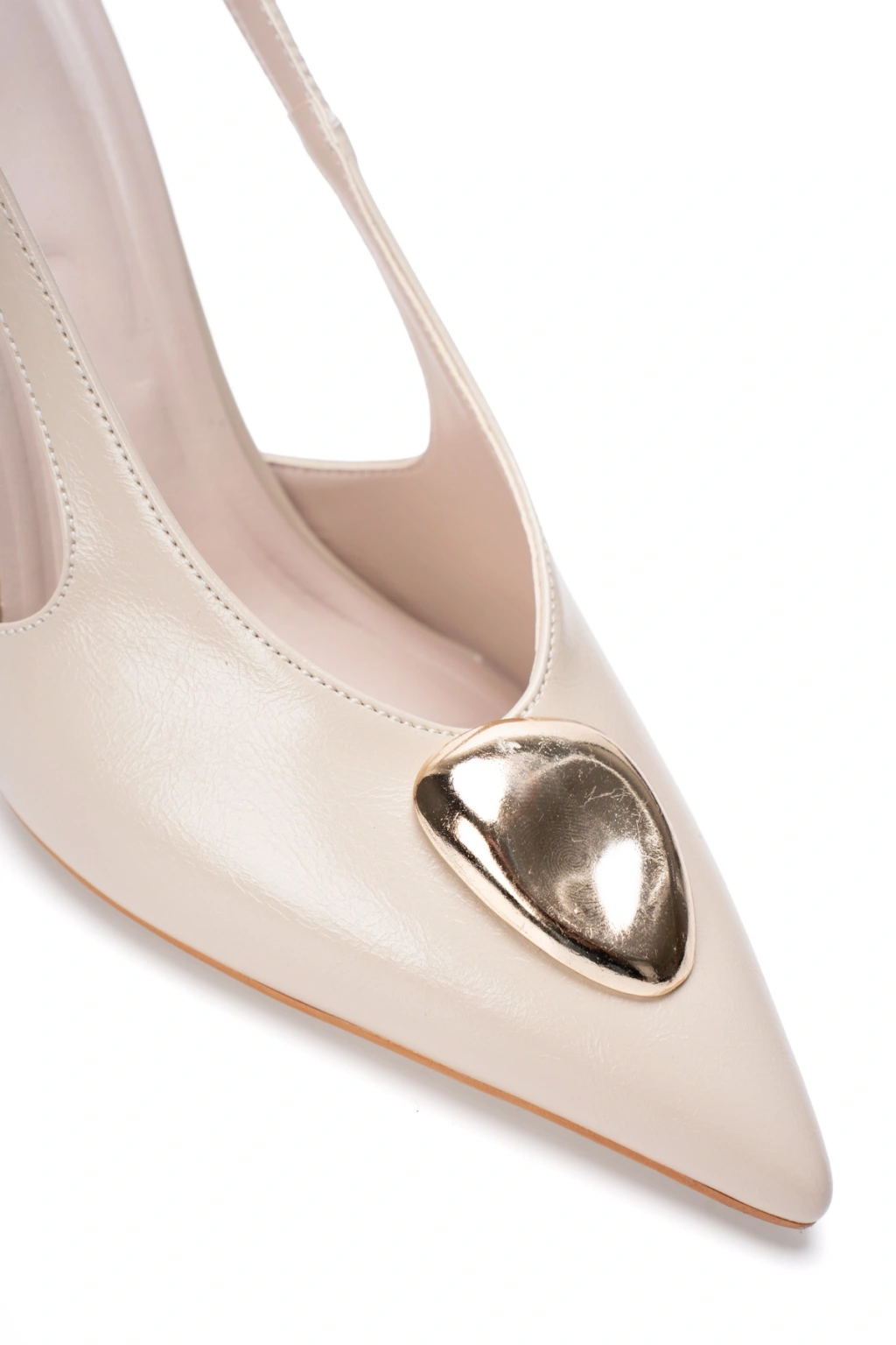 Kadın Hakiki Deri Görünümlü Tokalı Sivri Burunlu Ayakkabı Bej