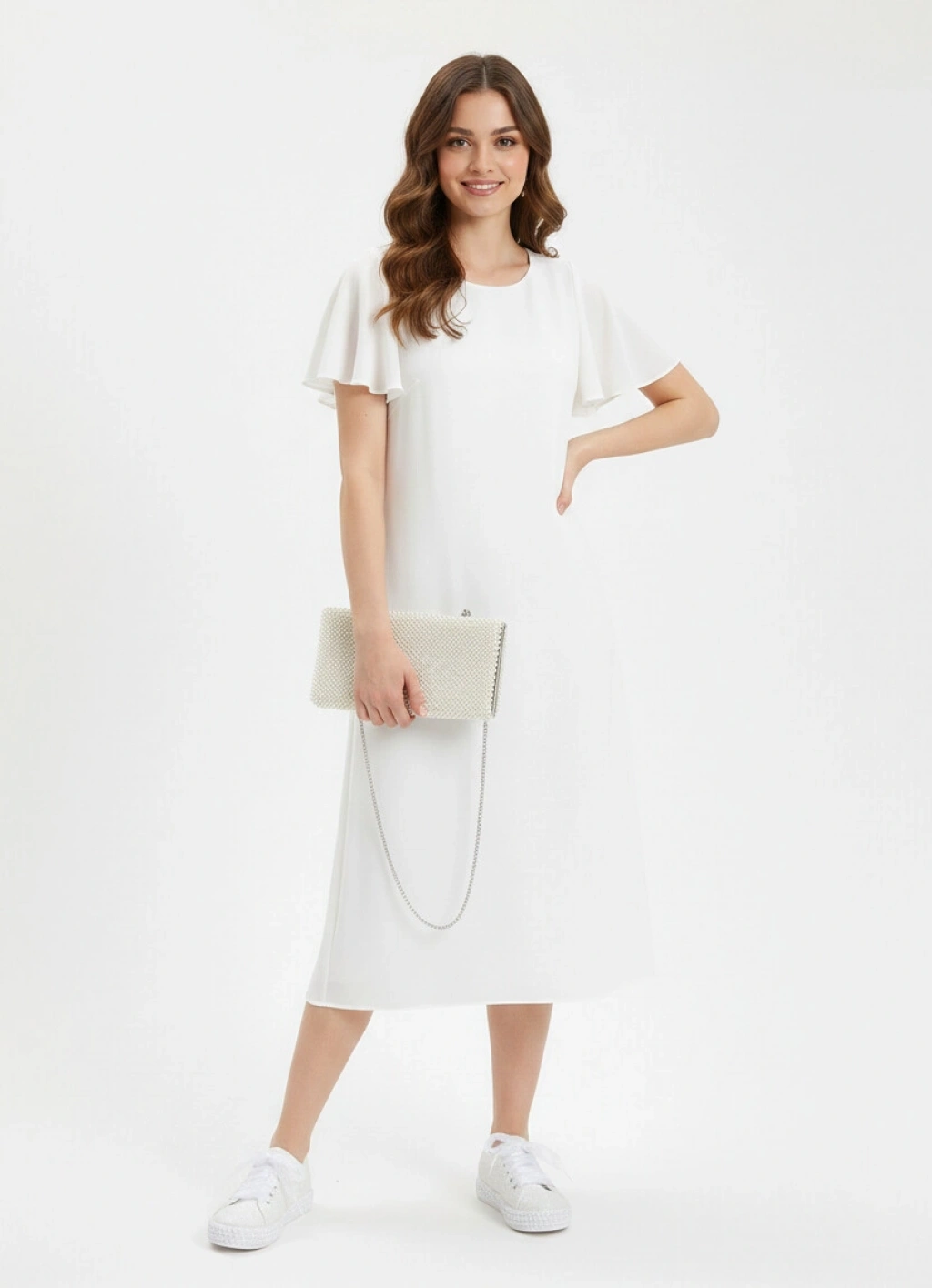 Kadın İncili Abiye Gelinlik Ayakkabı ve Çanta Takımı Beyaz