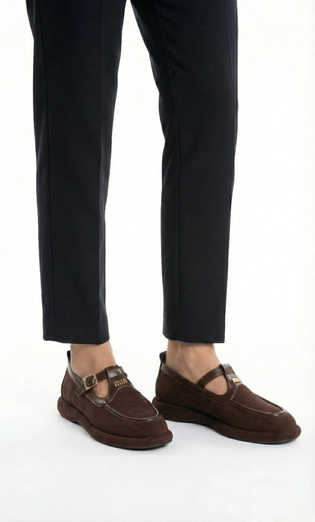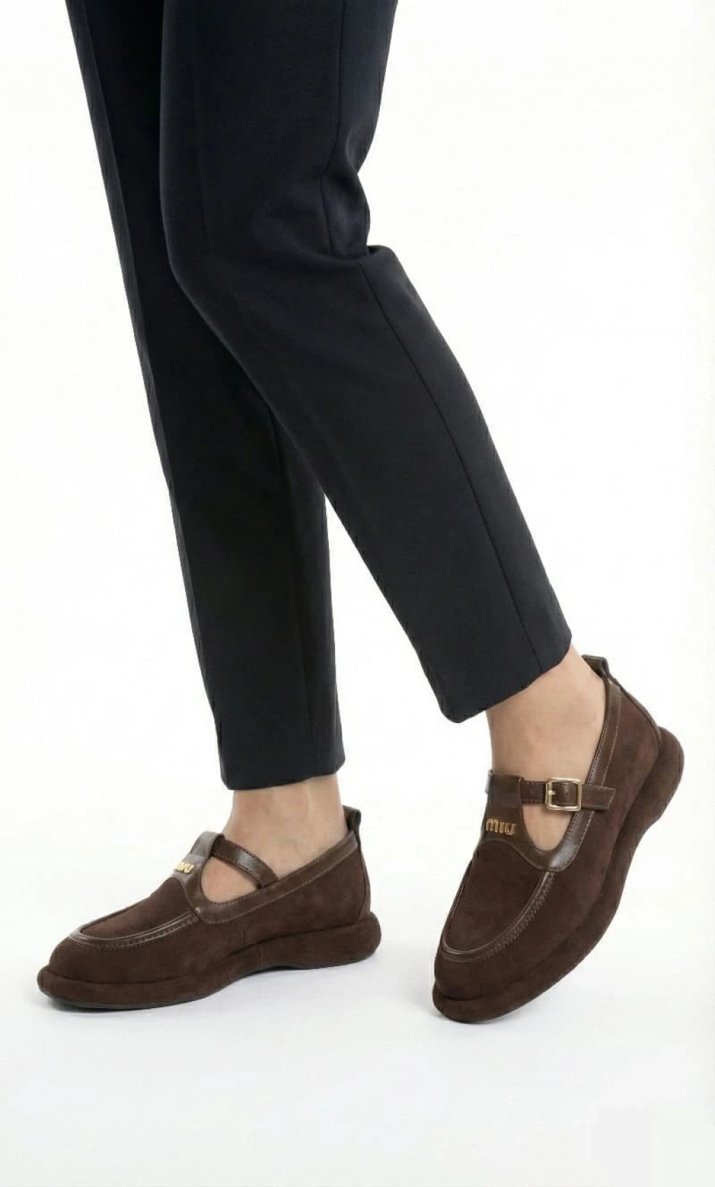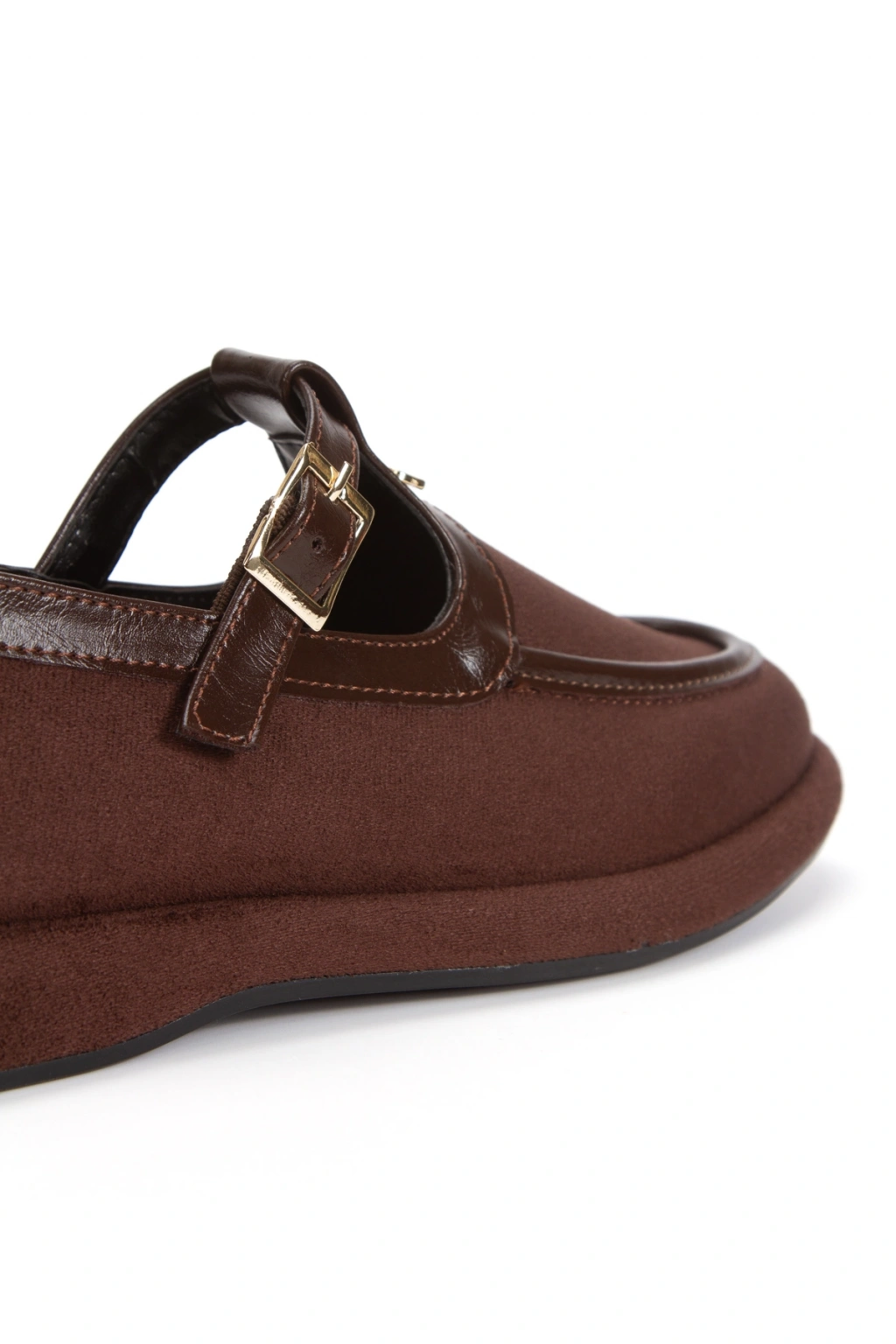 Kadın Günlük Rahat Tokalı Loafer Kahverengi Süet