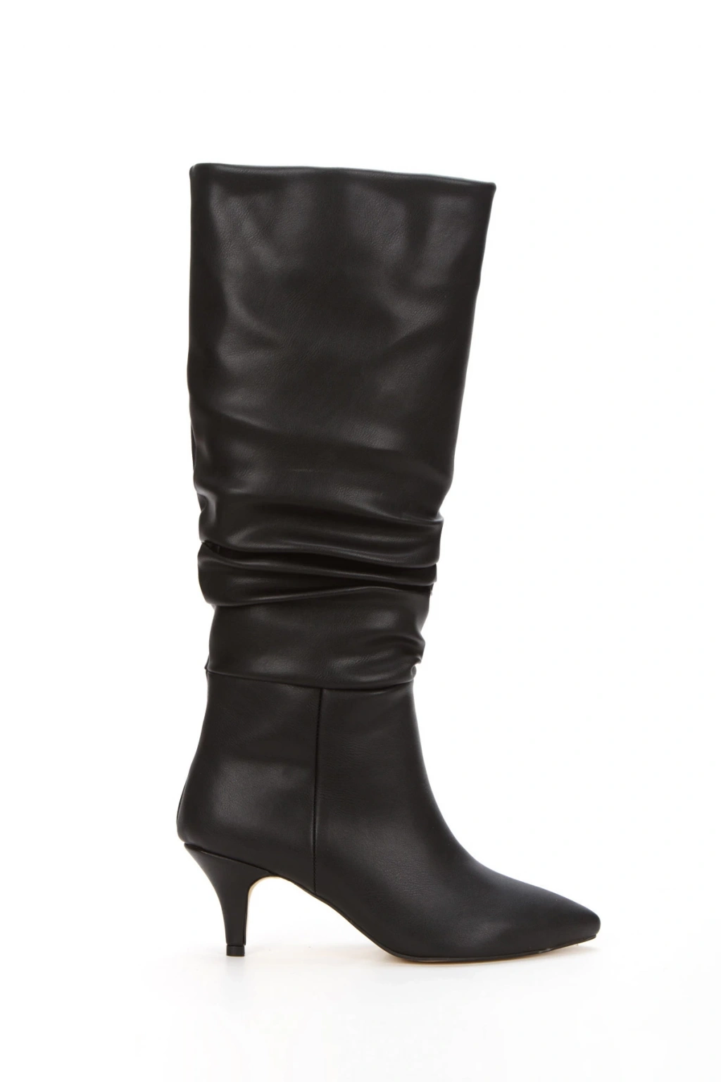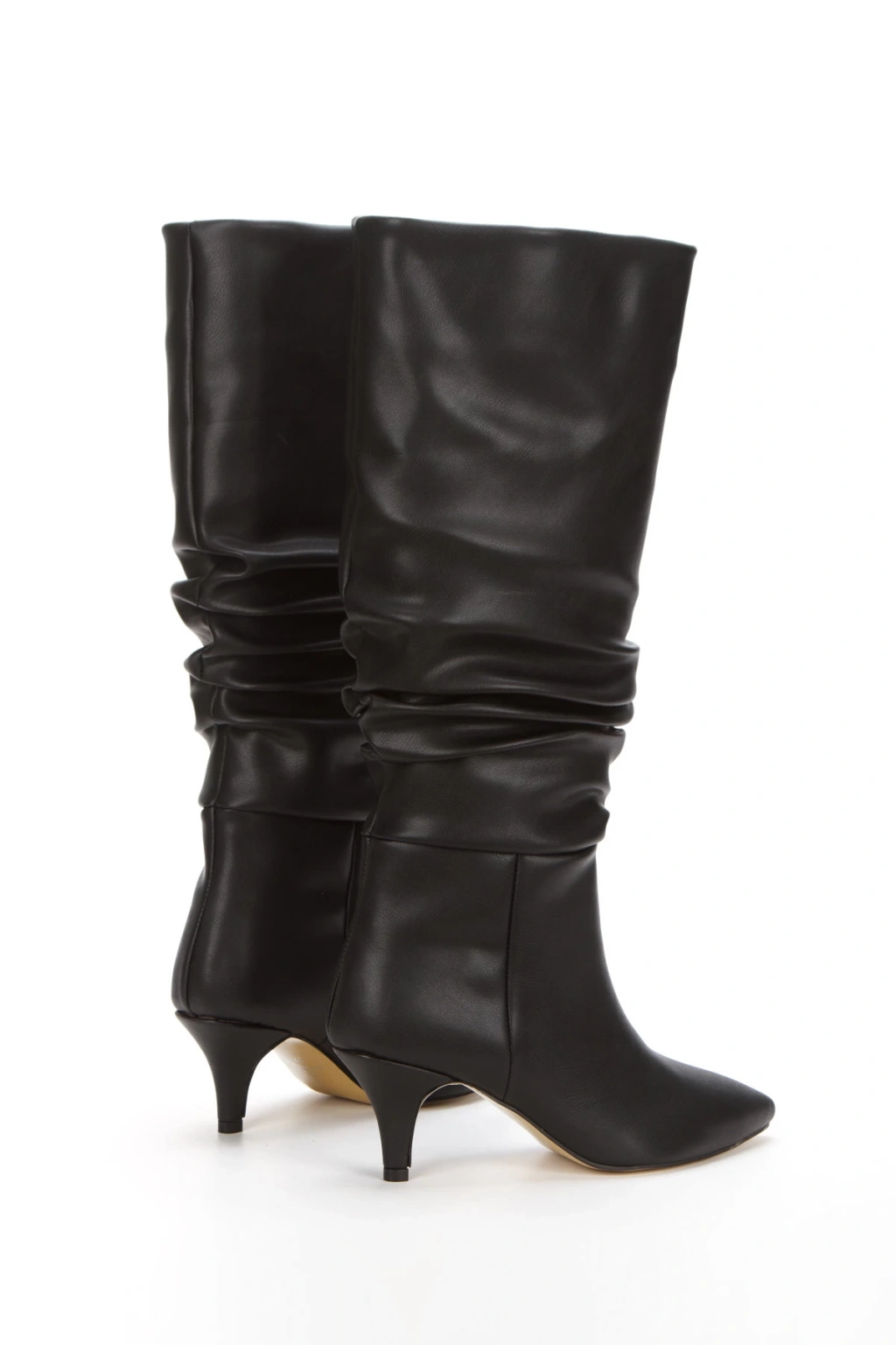 Kadın Siyah Büzgü Detaylı İnce Topuklu Dizaltı Çizme