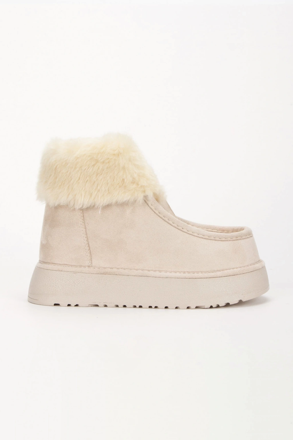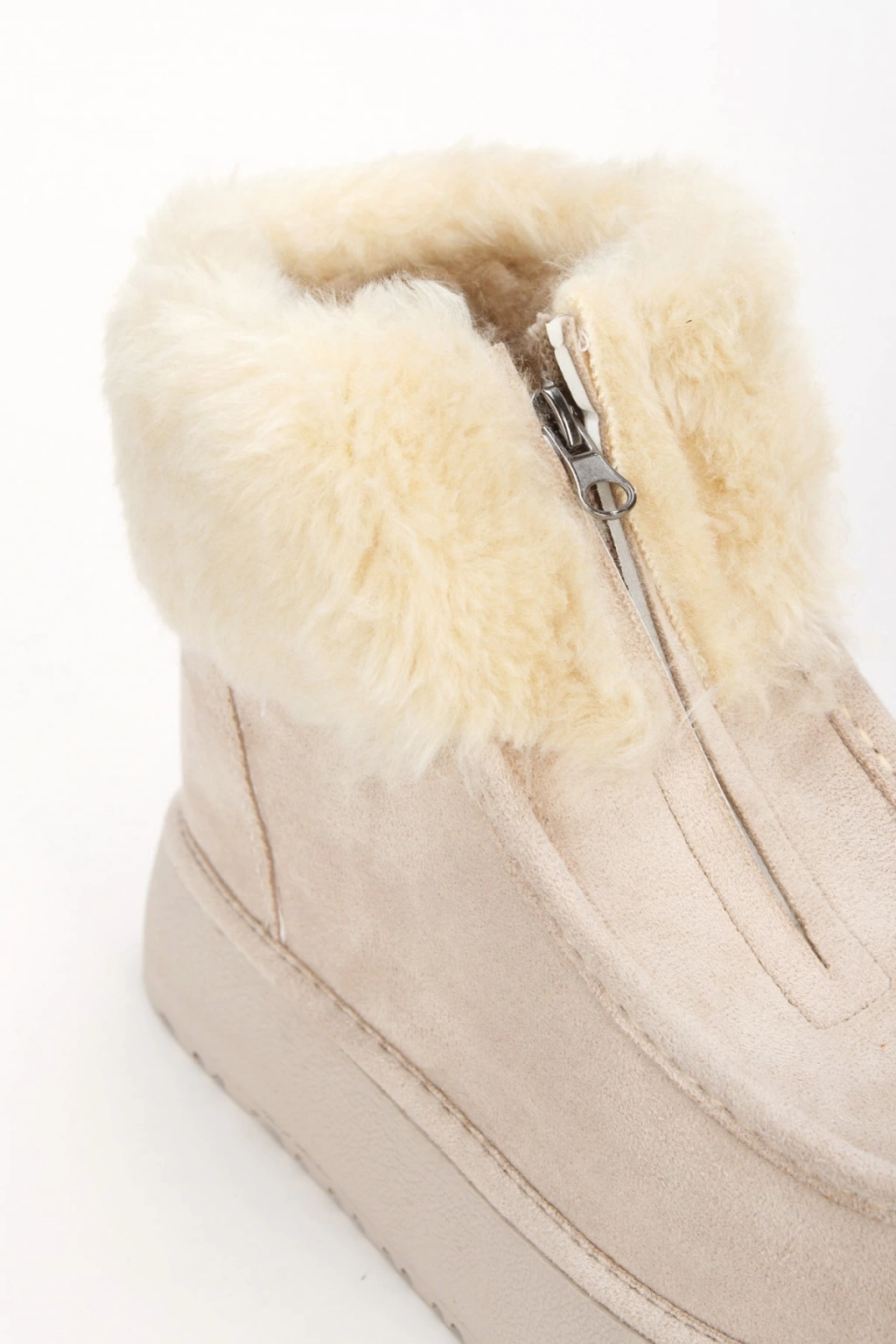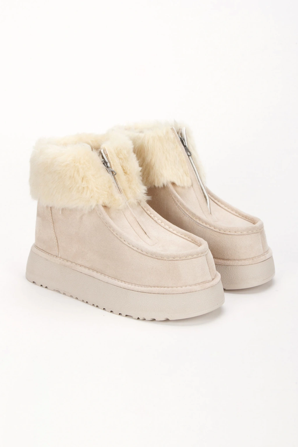 Kadın Bej Fermuarlı Kalın Tabanlı Bot Kürklü Model