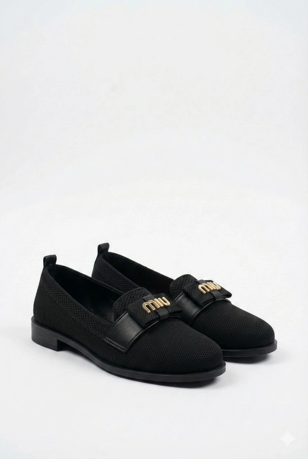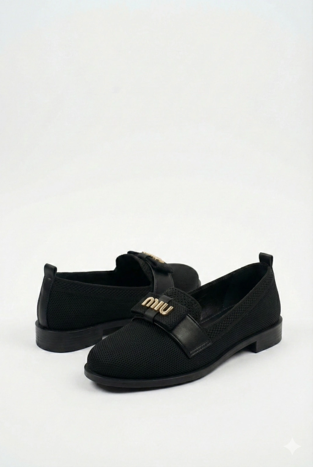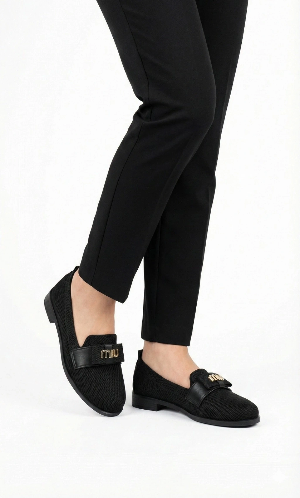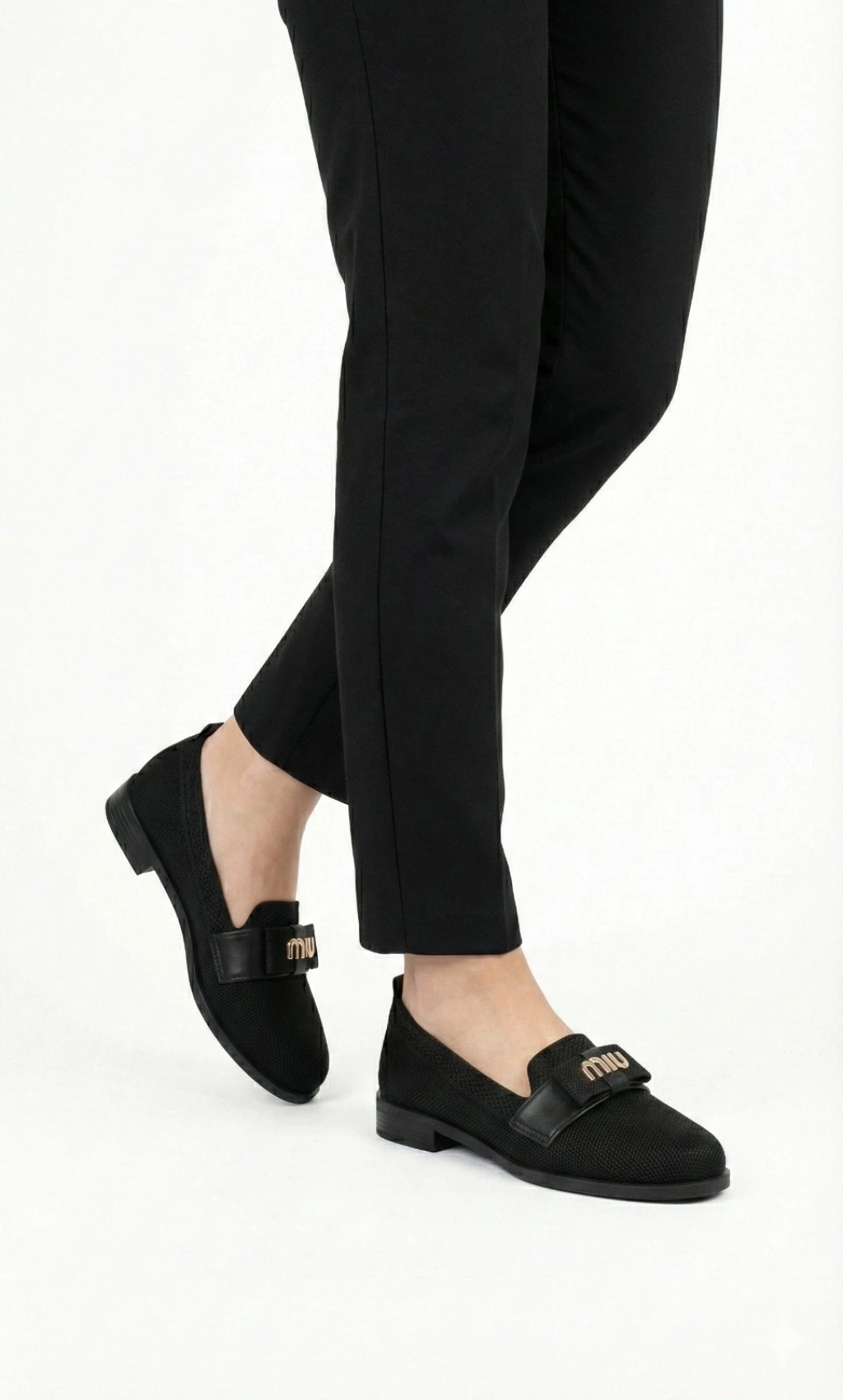 Siyah Esnek Düz Tabanlı Büzgülü Babet