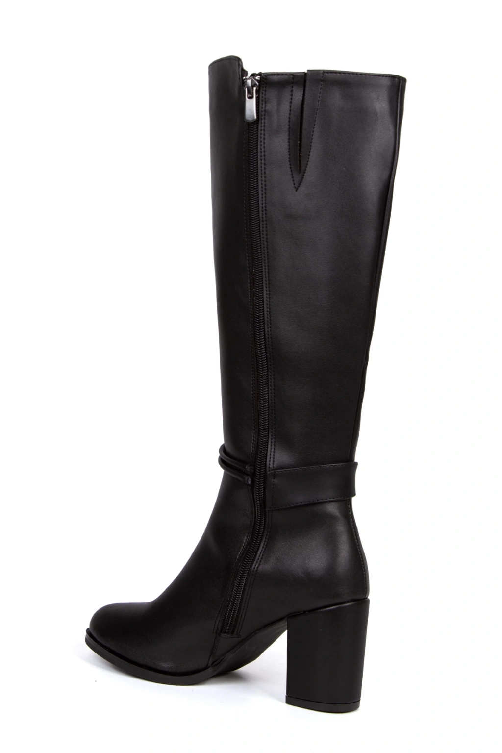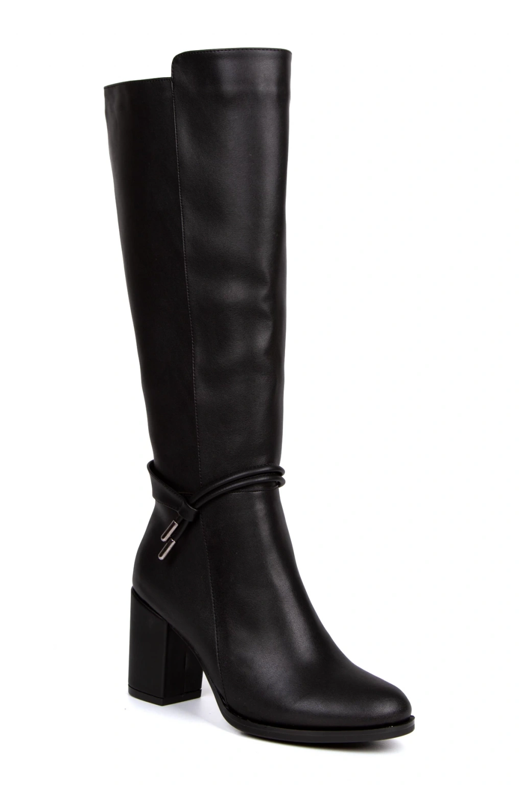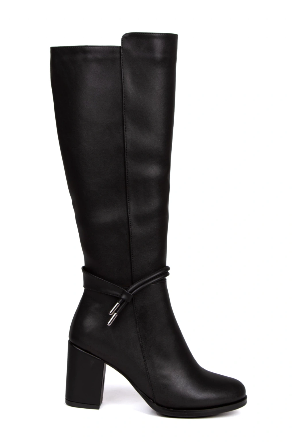 Kadın Kalın Topuklu Siyah Suni Deri Biyeli Çizme