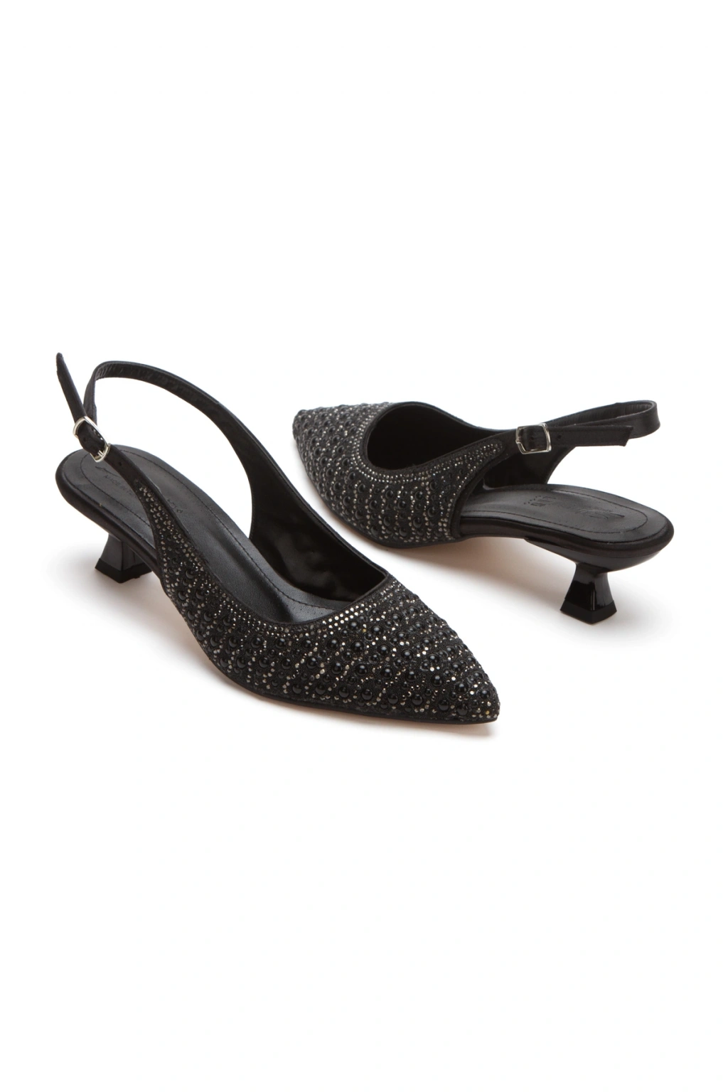 Kadın Kısa Topuklu İncili Gelinlik Abiye Ayakkabı Siyah