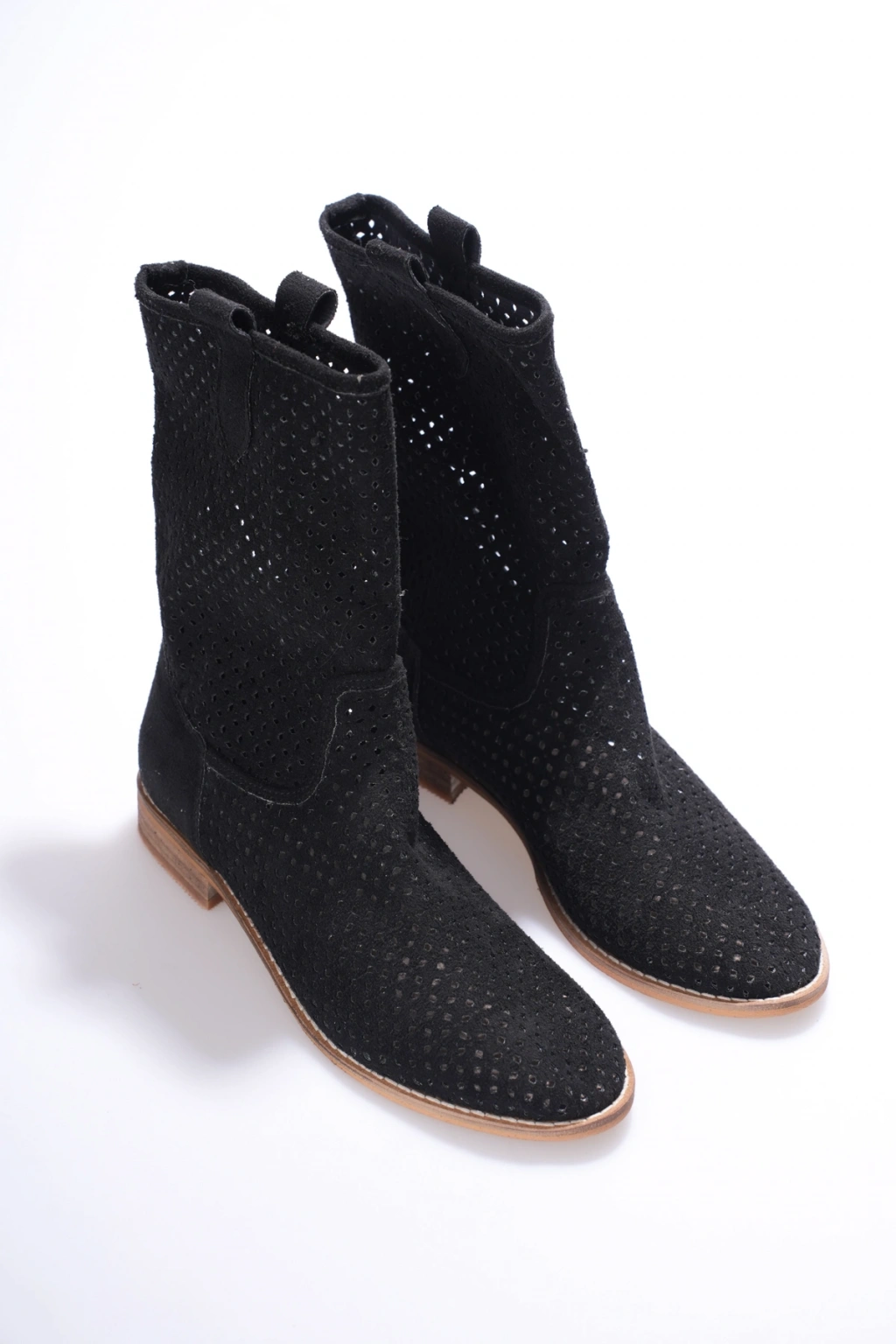 Kadın Siyah Süet Western Tarzı Çekme Bot