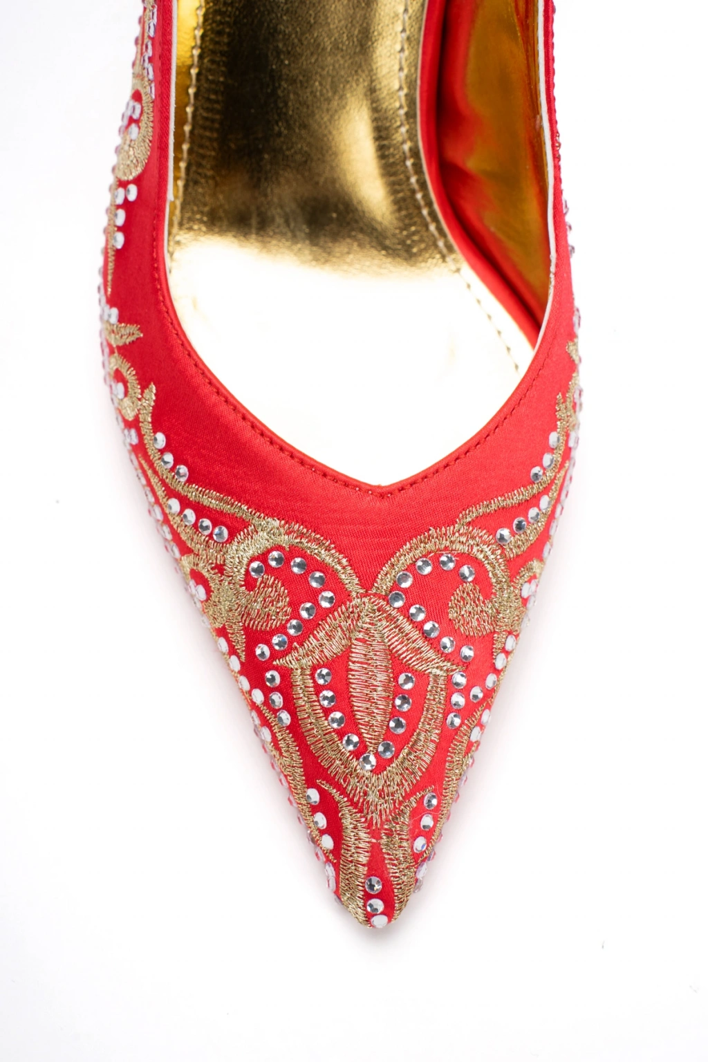 Kadın Özel Üretim Desenli Sivri Burunlu Abiye Ayakkabı Kırmızı