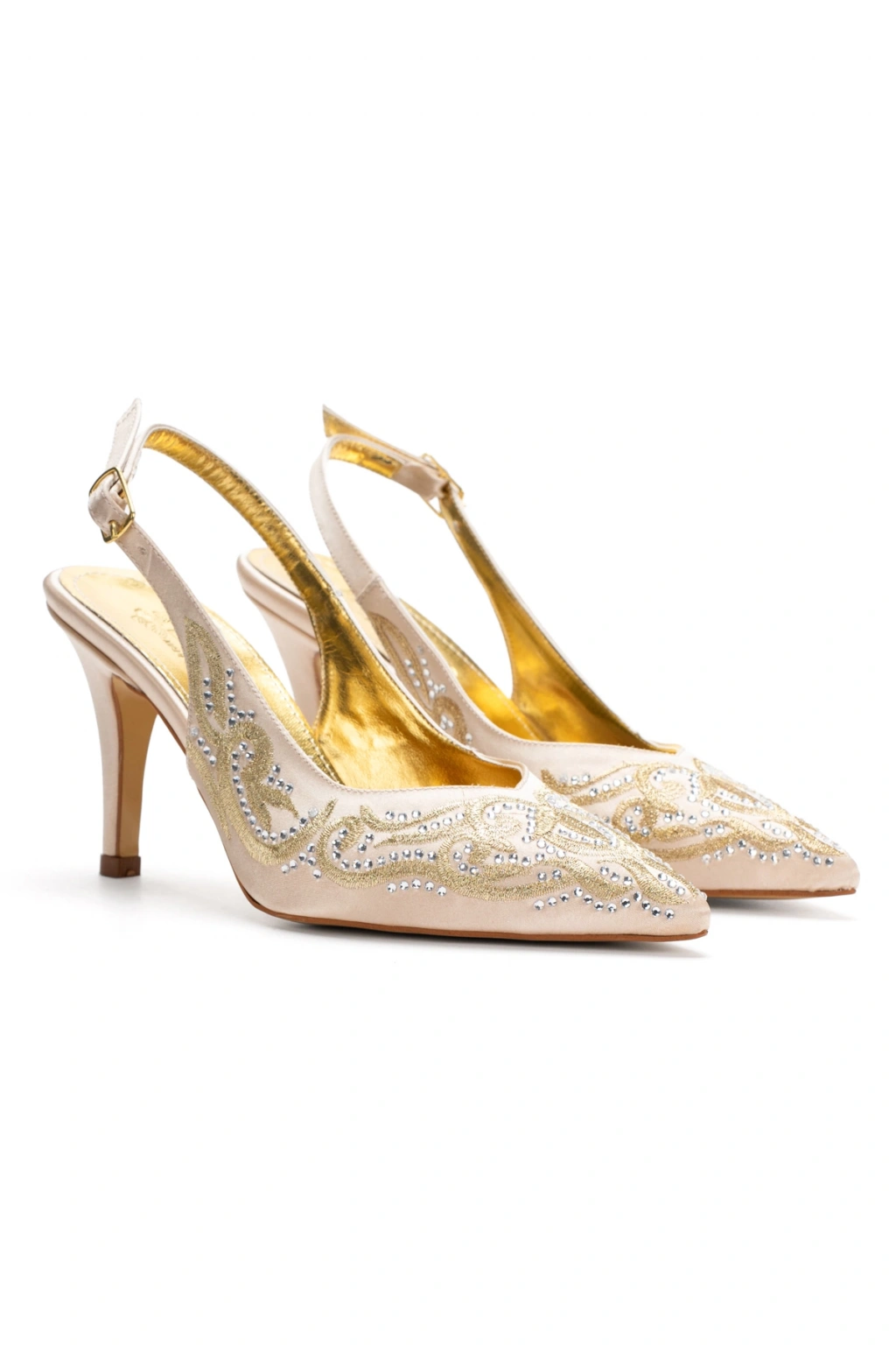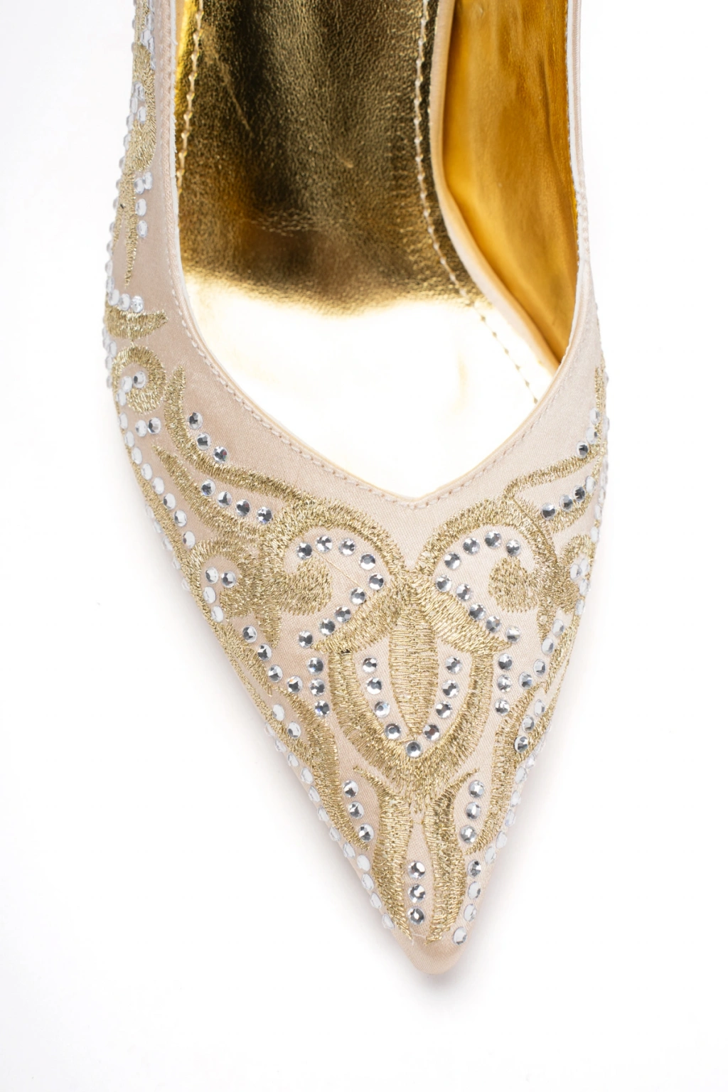 Kadın Özel Üretim Desenli Sivri Burunlu Abiye Ayakkabı Altın