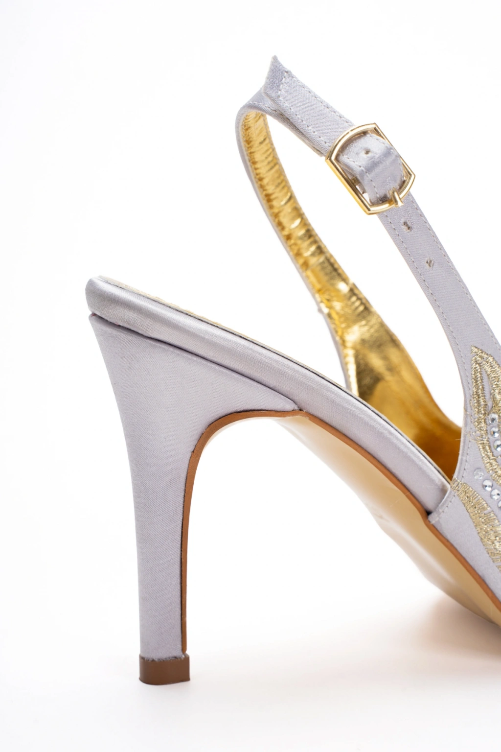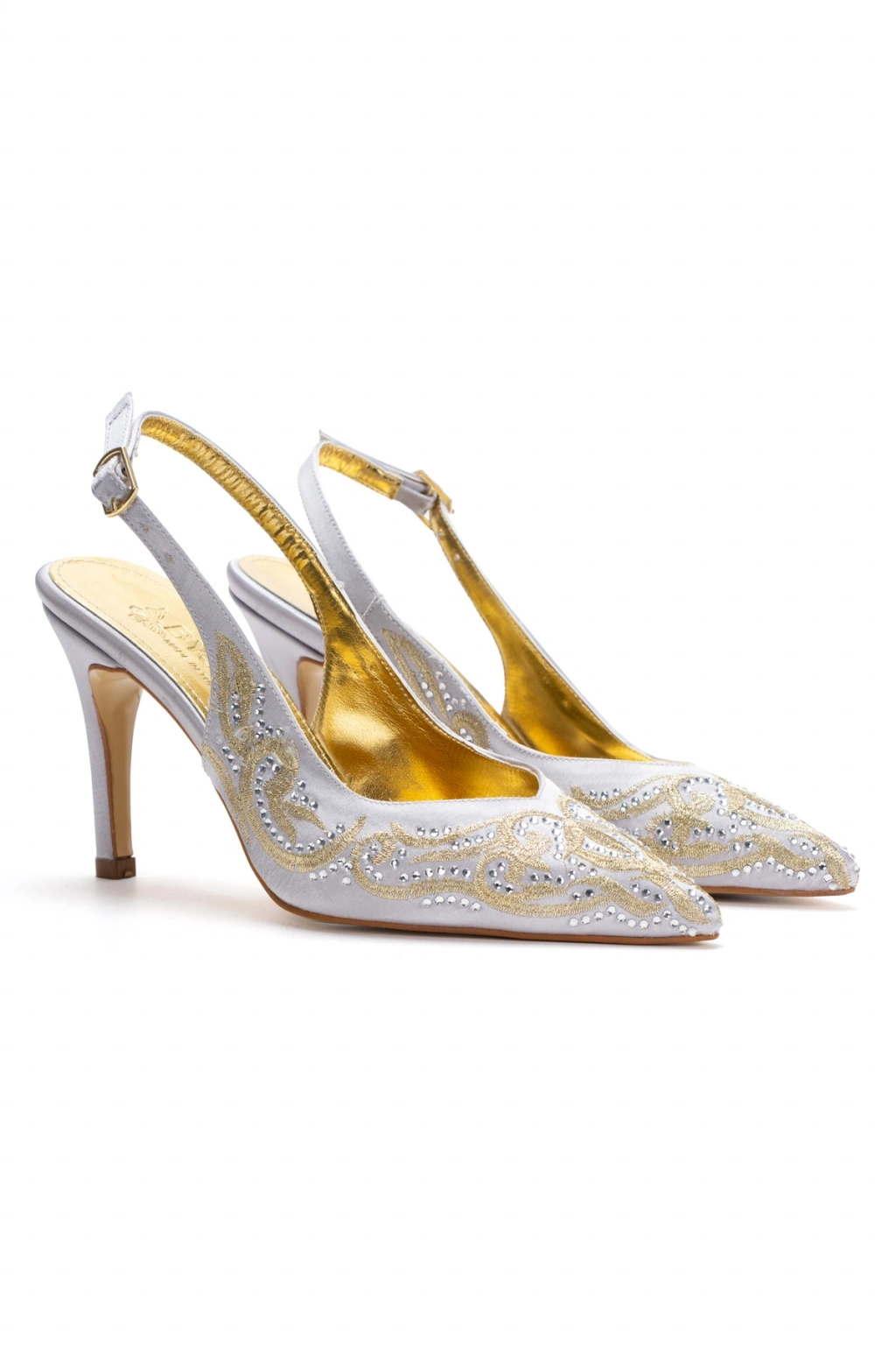 Kadın Özel Üretim Desenli Sivri Burunlu Abiye Ayakkabı Gümüş
