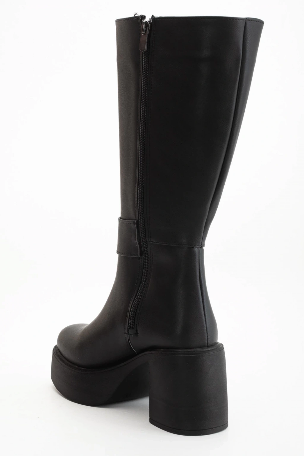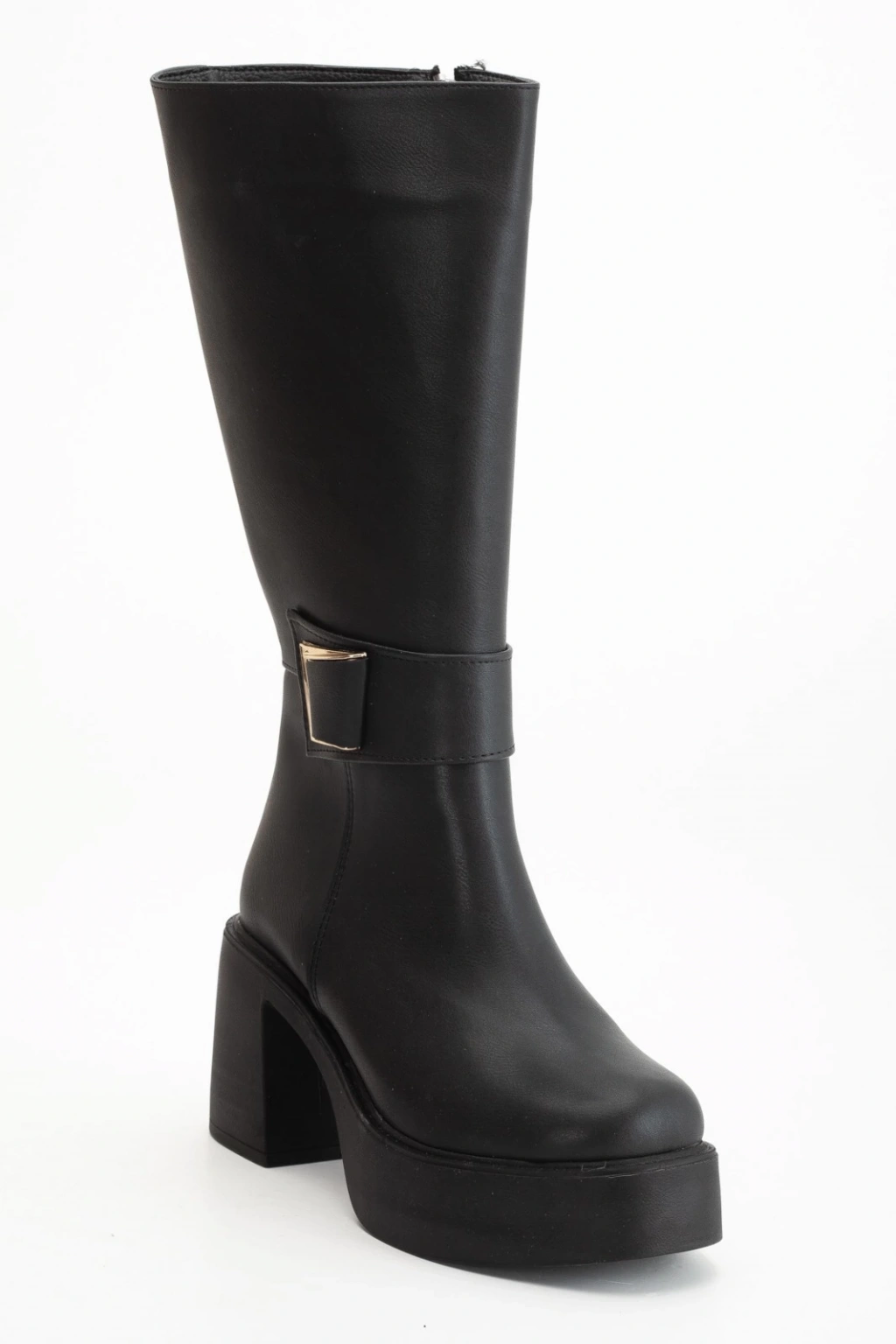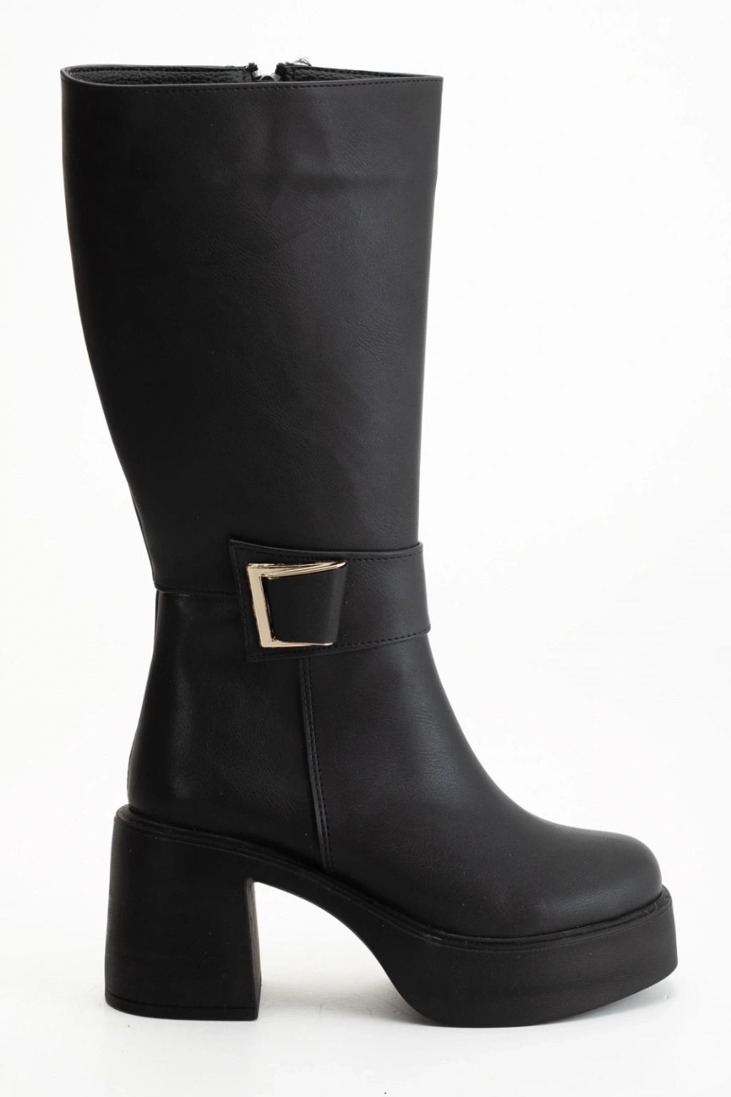 Kadın Platform Topuklu Tokalı Çizme Siyah