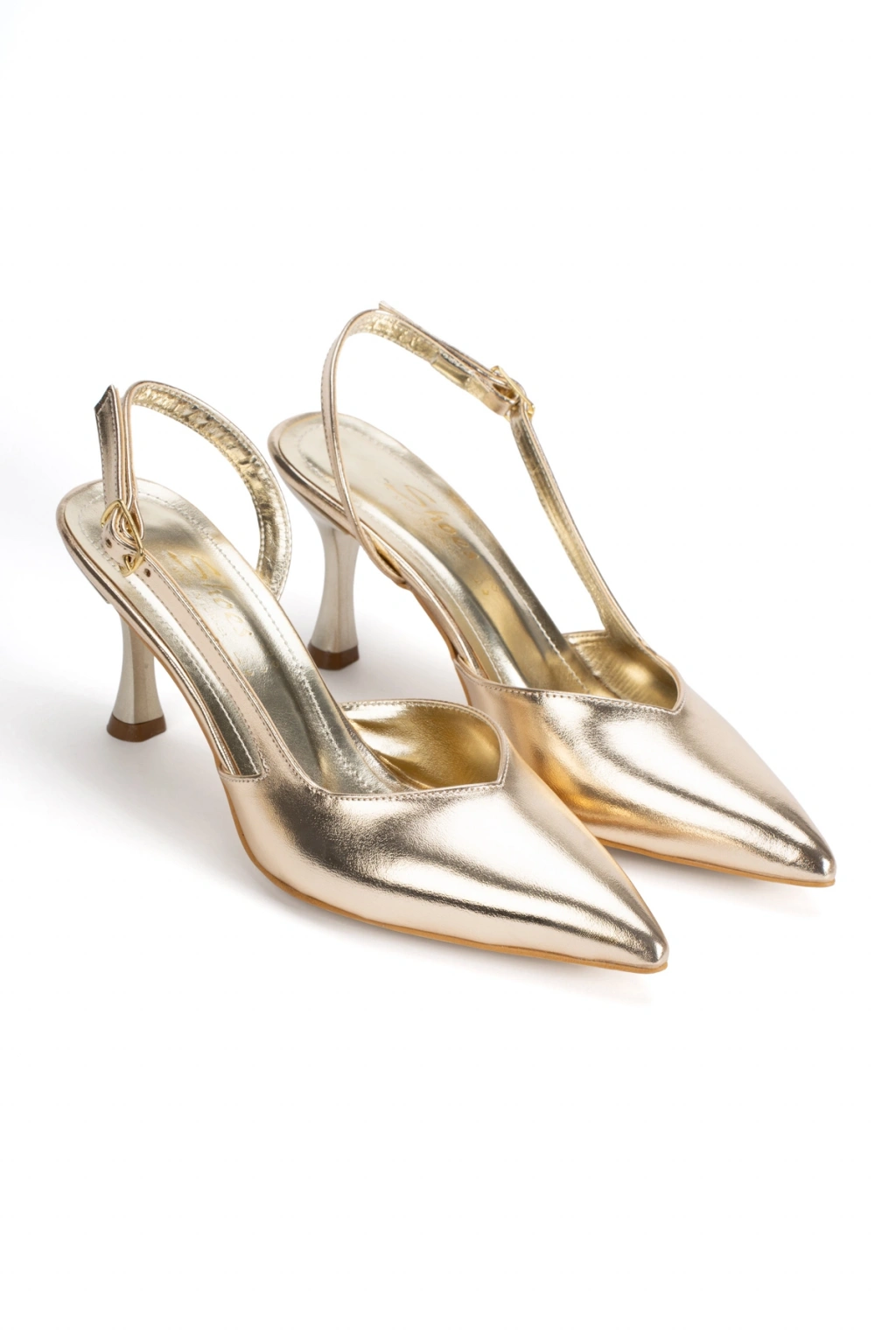 Kadın Sivri Burunlu Arkası Açık İnce Topuklu Stiletto Altın