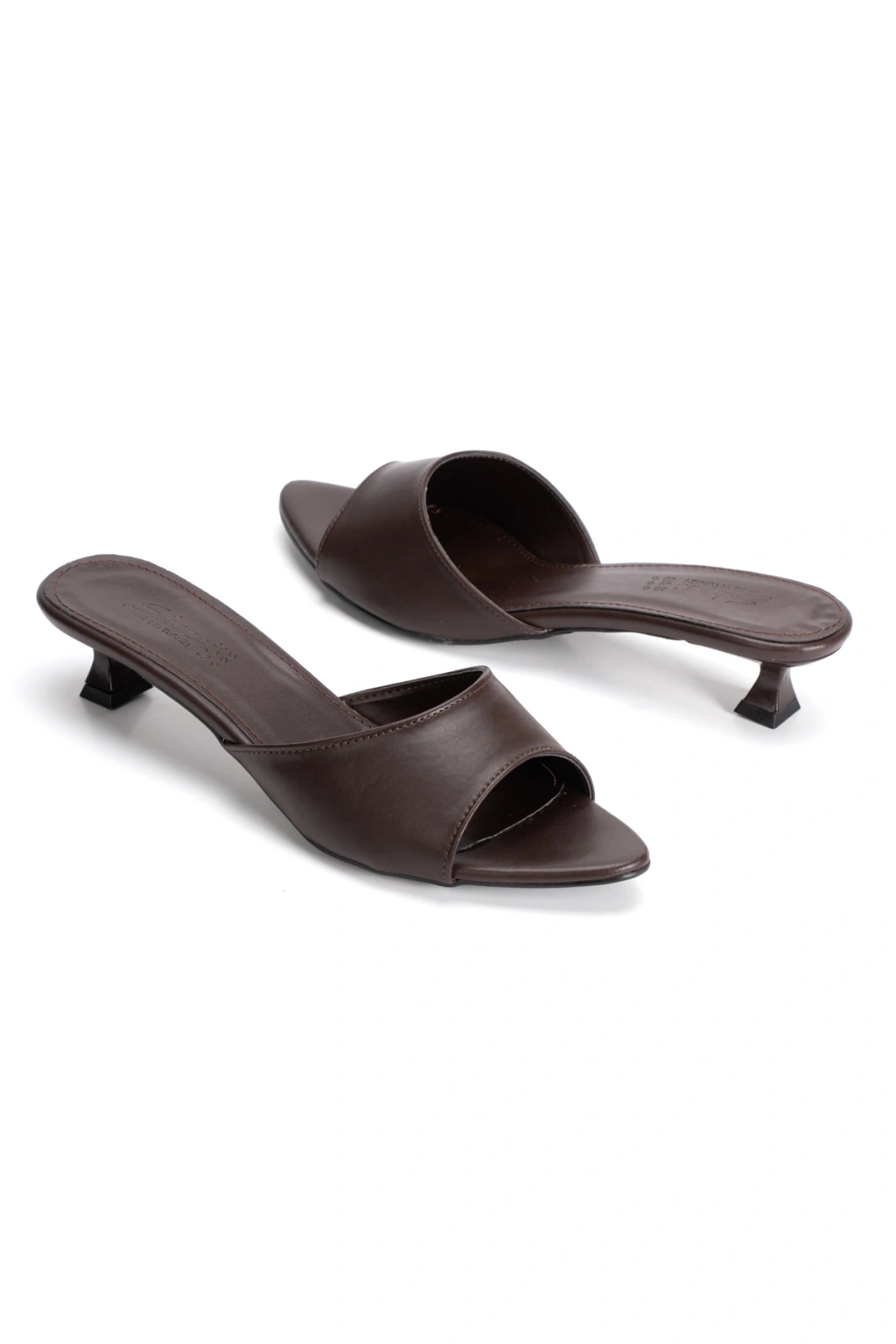 Kahverengi Tek Bantlı Özel Üretim Kalın Topuklu Terlik