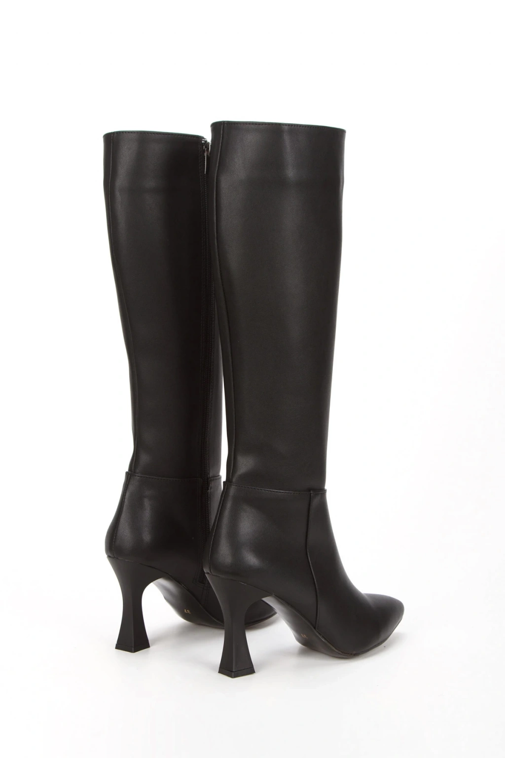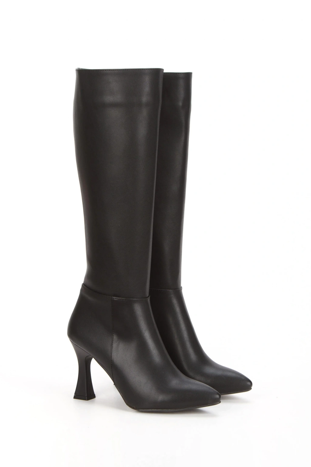 Kadın Siyah Dizaltı Sivri Burun İnce Topuklu Fermuarlı Çizme