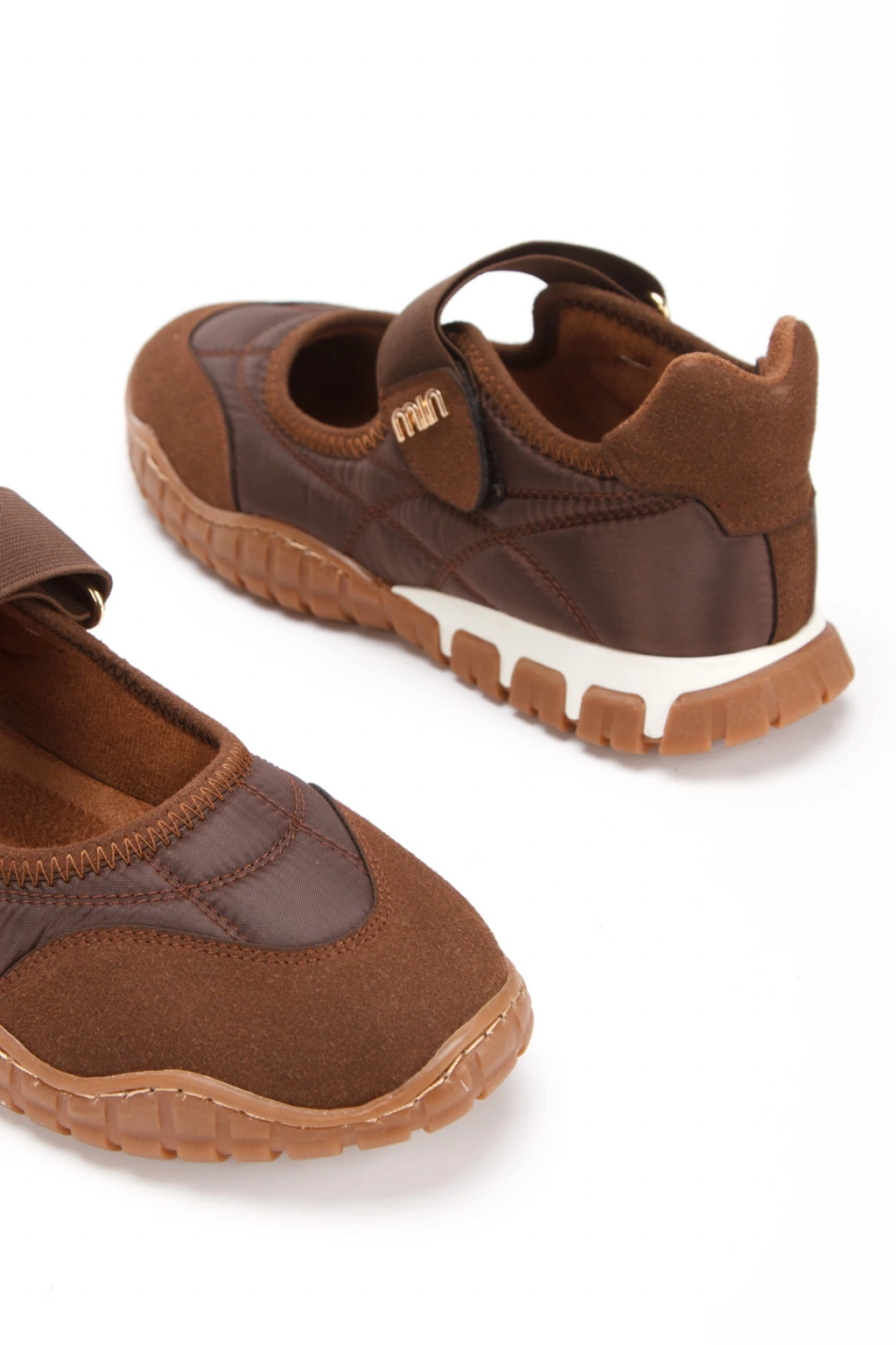 Kadın Kahverengi Ortopedik Taban Cırtlı Babet Spor Ayakkabı