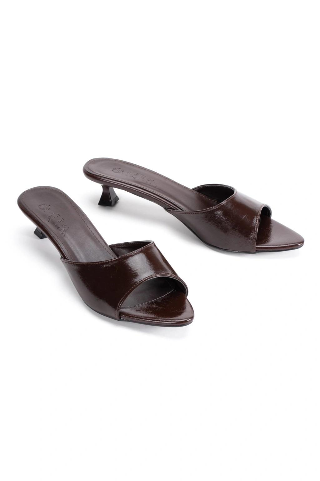 Kadın Kahverengi Rugan Alçak Topuklu Sivri Burunlu Terlik