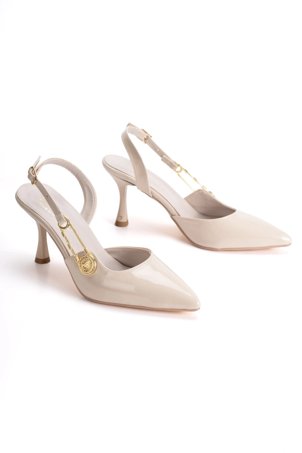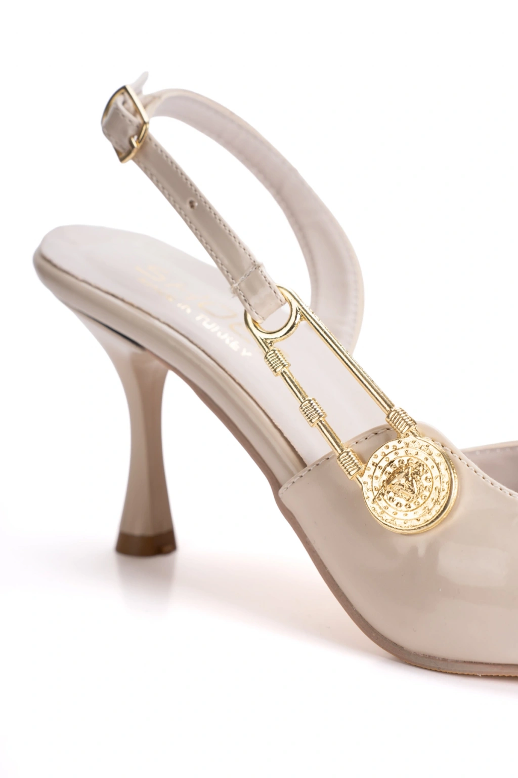 Kadın Bej Sivri Burunlu Aksesuarlı Stiletto