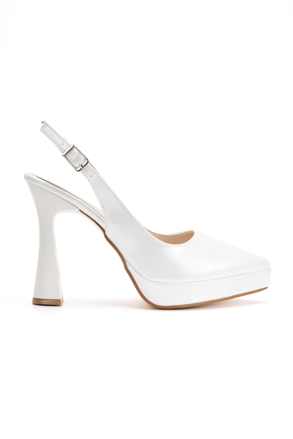 Kadın Sedef Sivri Burunlu Platform Topuklu Arkası Açık Abiye Ayakkabı
