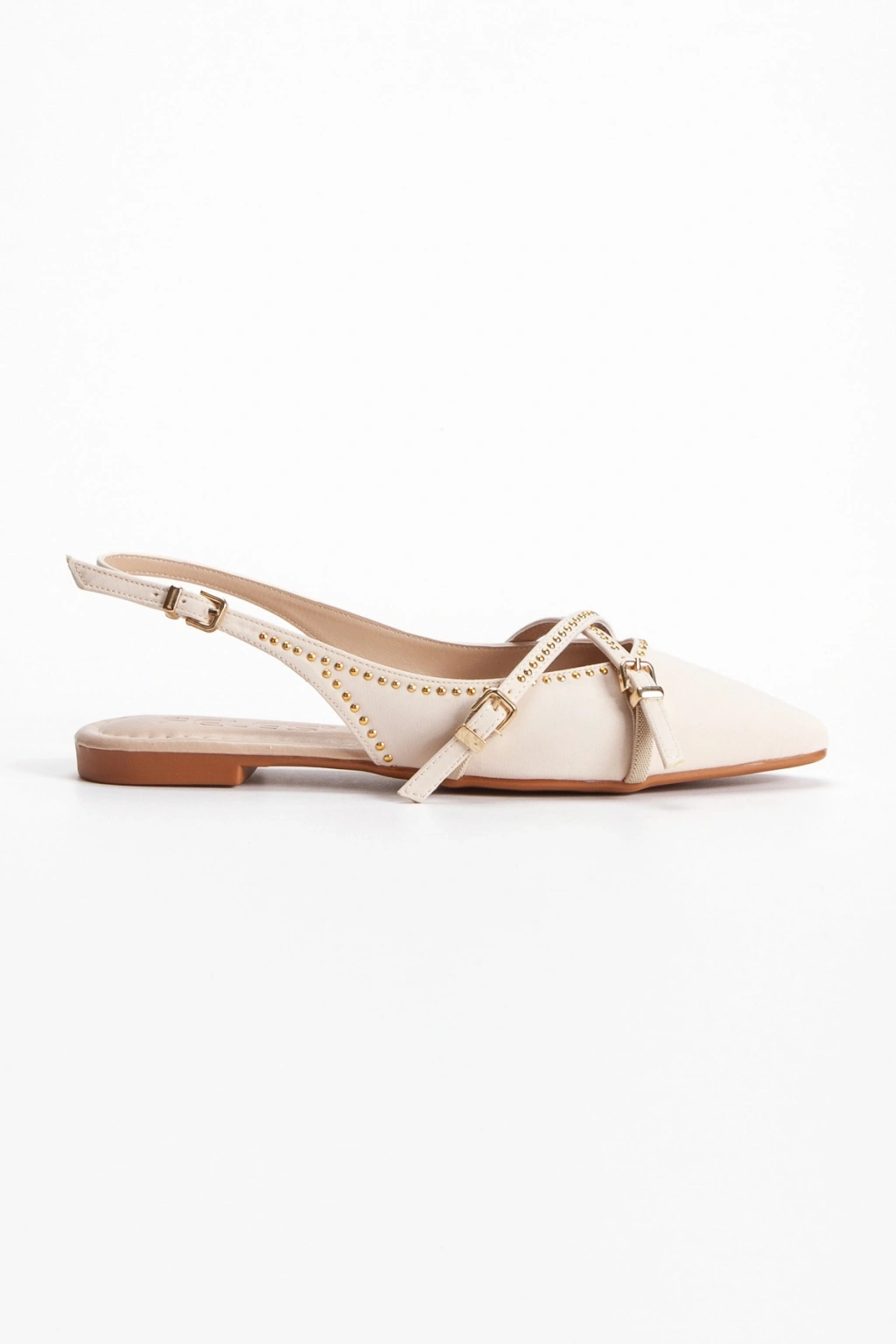 Kadın Bej Zımba Detaylı Kemerli Sivri Burunlu Babet