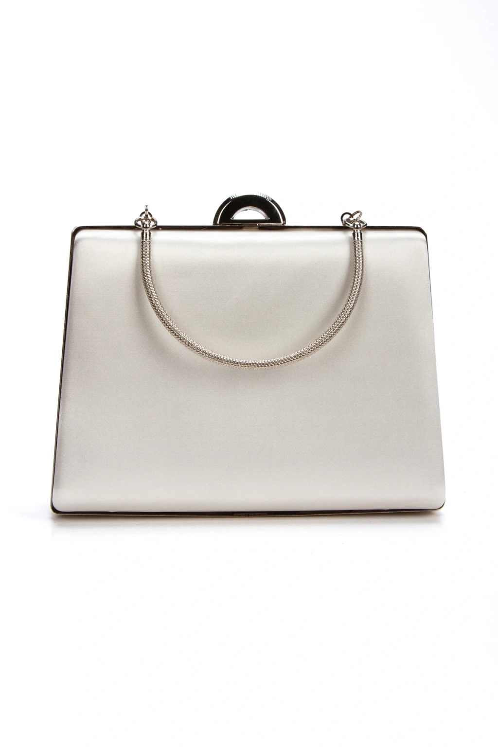 Kadın Taşlı Abiye Portföy Clutch Zincir Askılı Çanta Gümüş