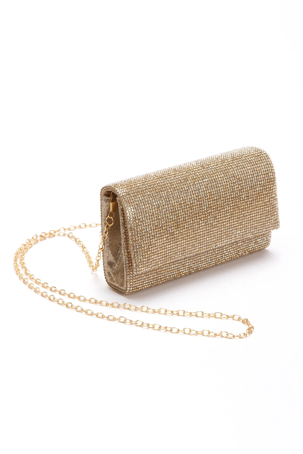 Kadın Taşlı Abiye Portföy Clutch Zincir Askılı Çanta Gold