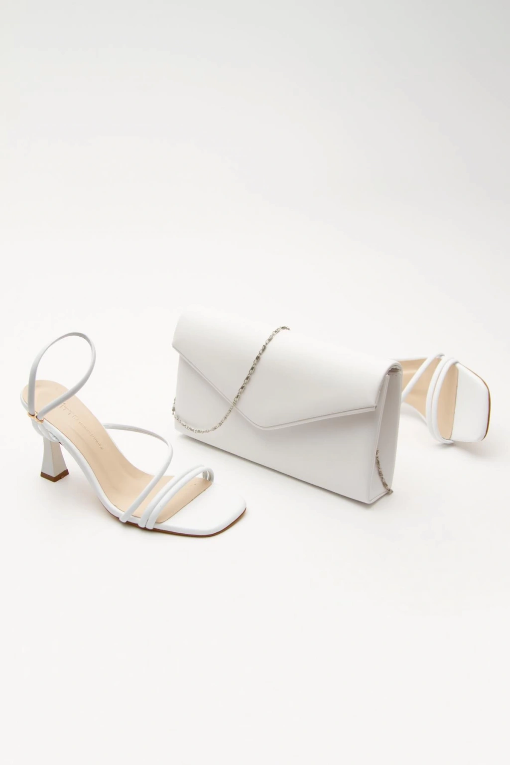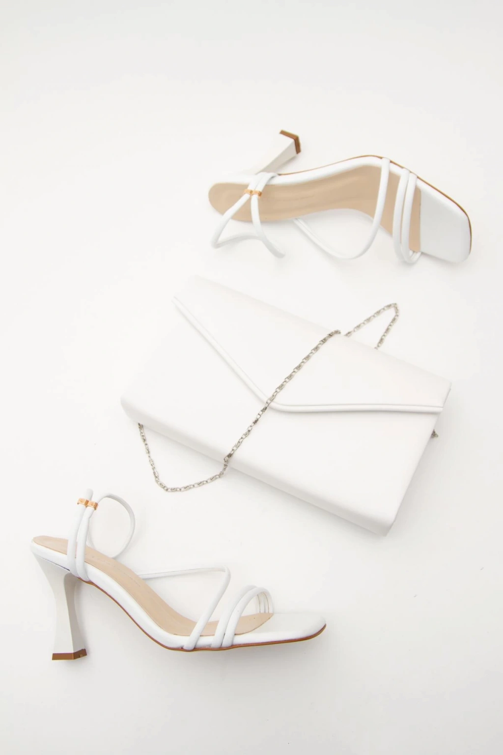 Kadın Yazlık Ince Topuklu Ayakkabı Ve Çanta Takımı Beyaz