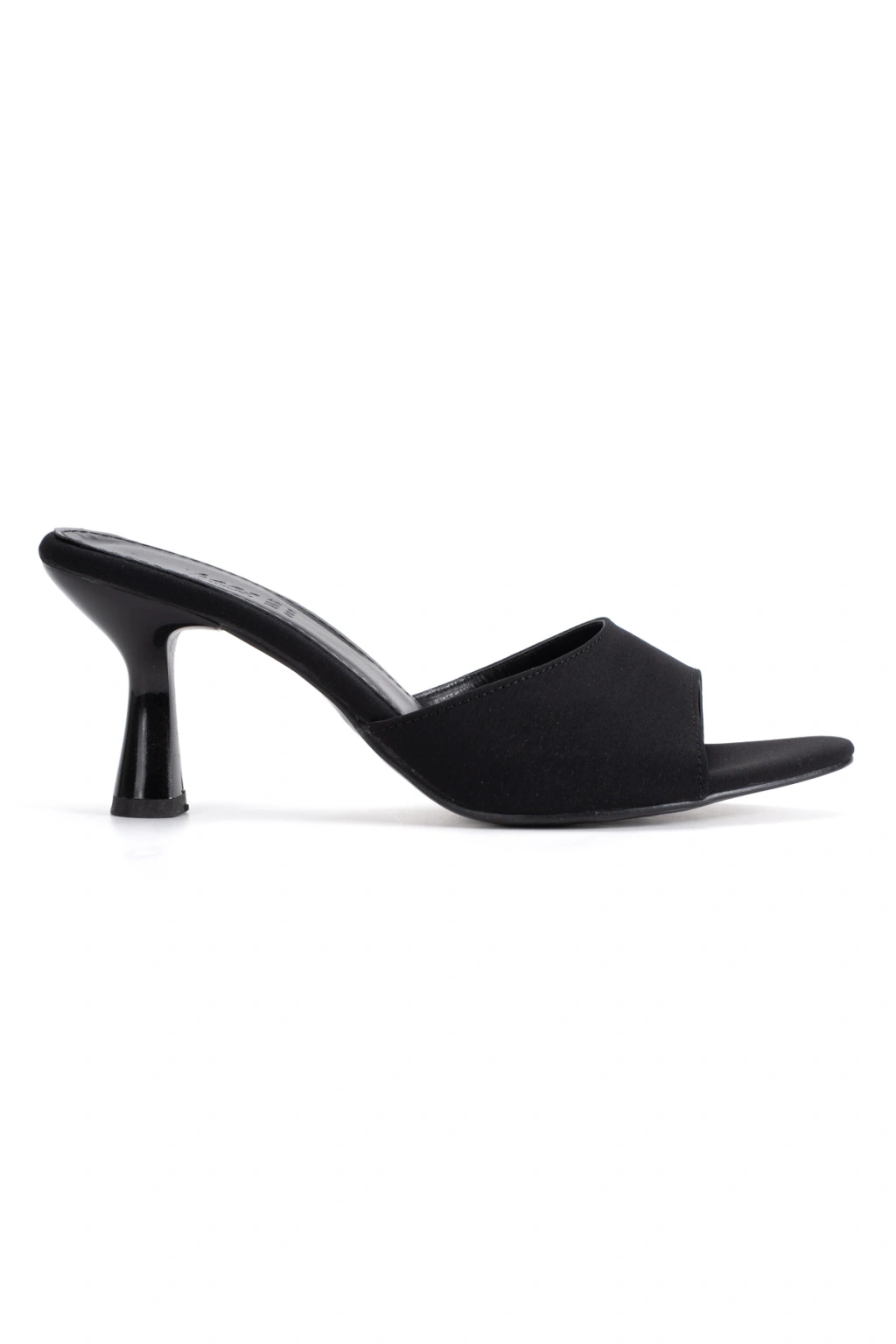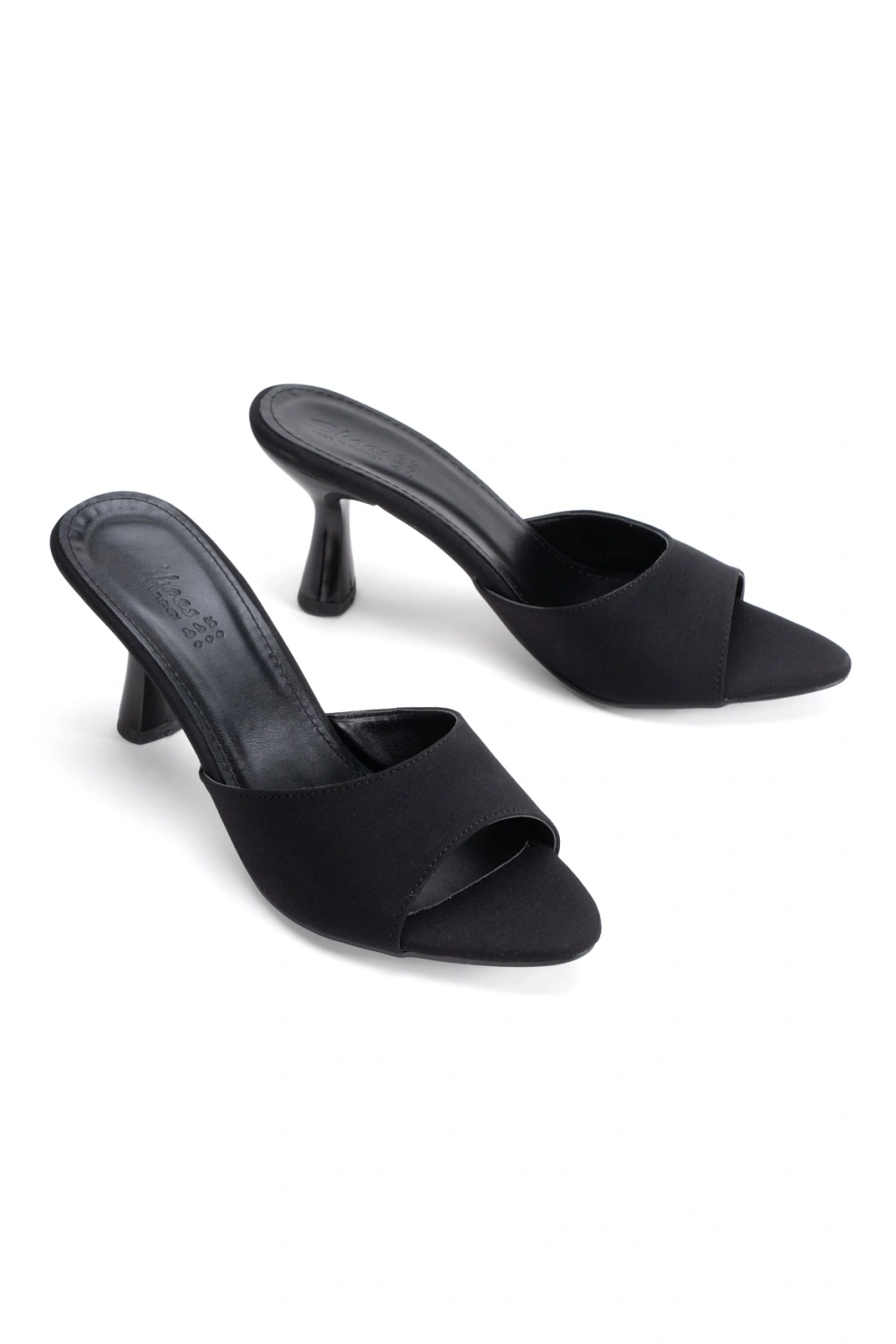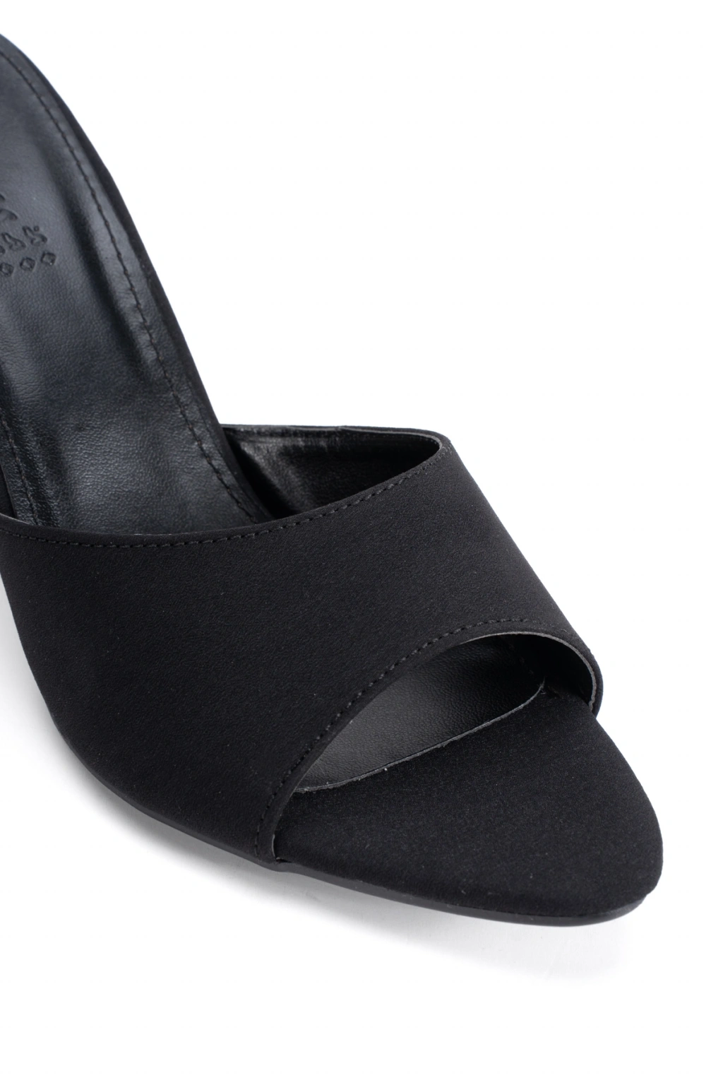 Siyah Saten Tek Bantlı Özel Üretim Kalın Topuklu Terlik