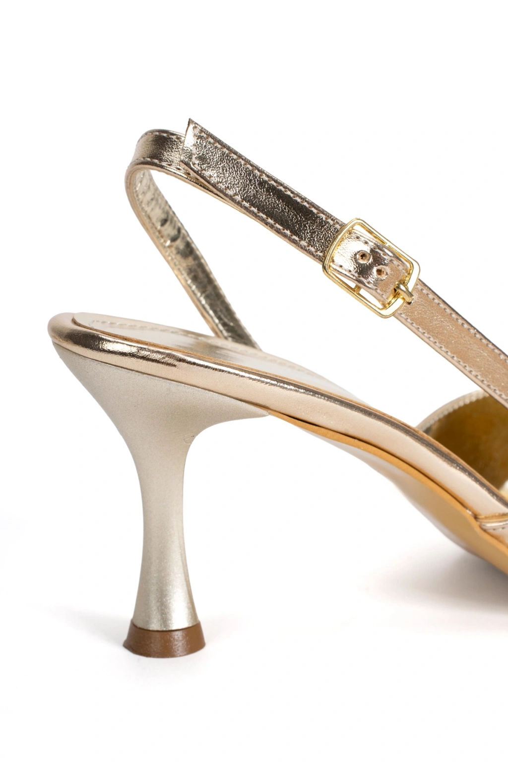 Kadın Sivri Burunlu Arkası Açık İnce Topuklu Stiletto Altın
