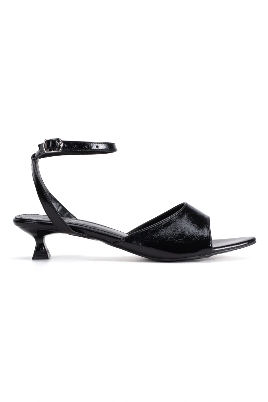 Siyah Kadın İnce Bantlı Bilekten Bağlamalı Kısa Topuklu Ayakkabı