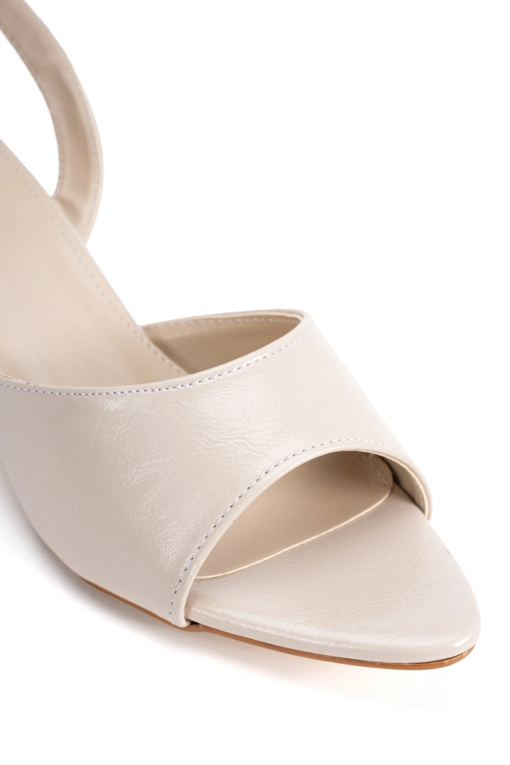 Kadın Bej Tek Bantlı Kare Burun İnce Topuklu Ayakkabı