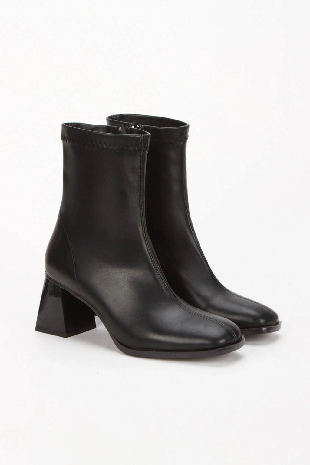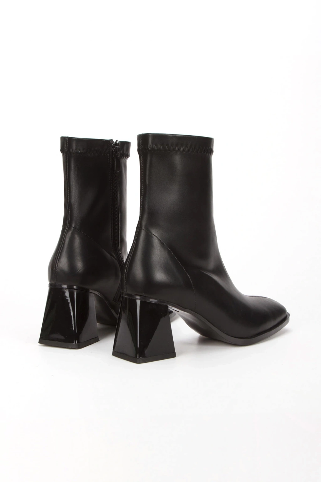 Kadın Siyah Rugan Büzgülü Sivri Burunlu Kısa Bot