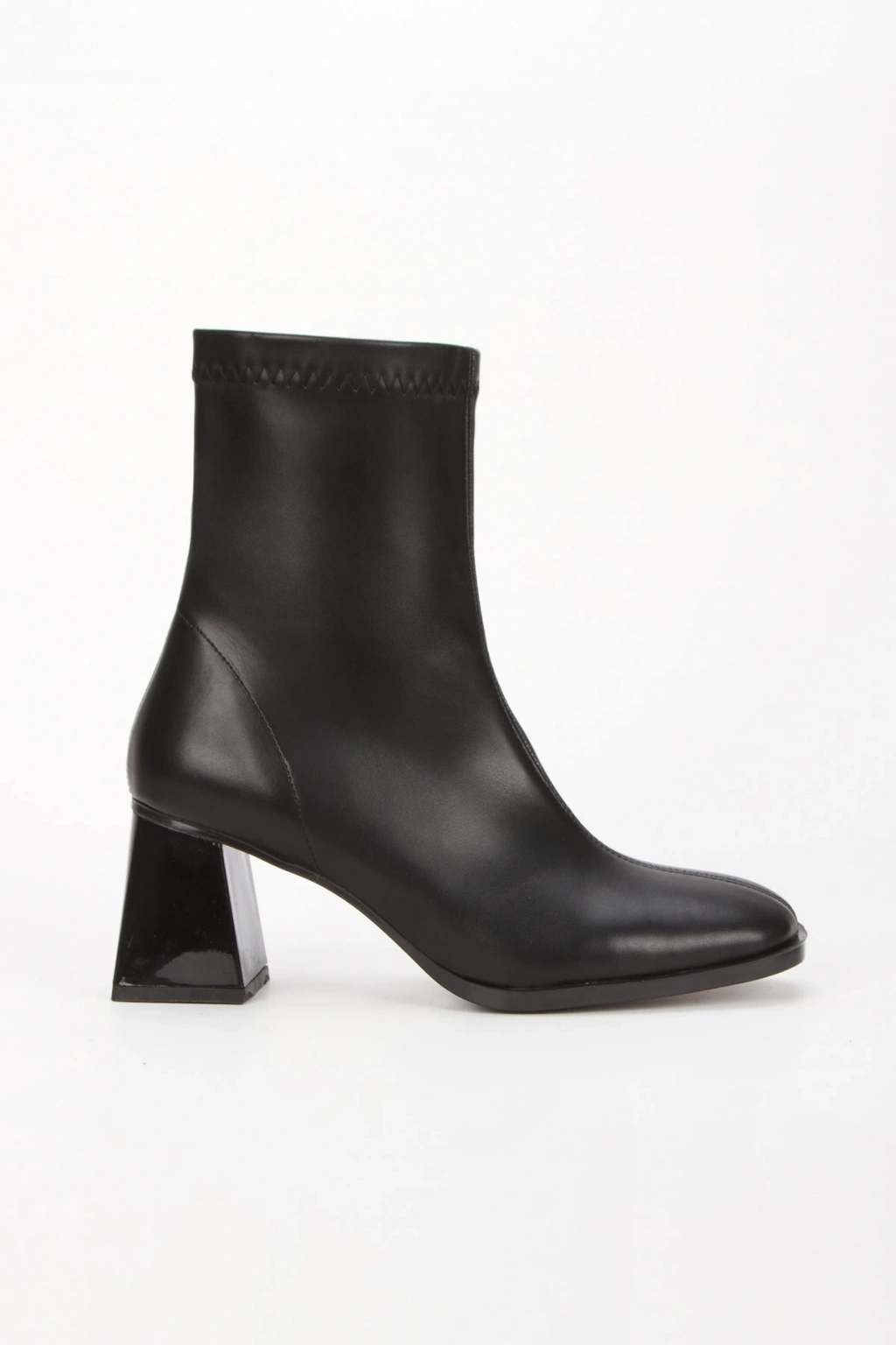 Kadın Siyah Özel Tasarım İnce Topuklu Büzgülü Fermuarlı Bot