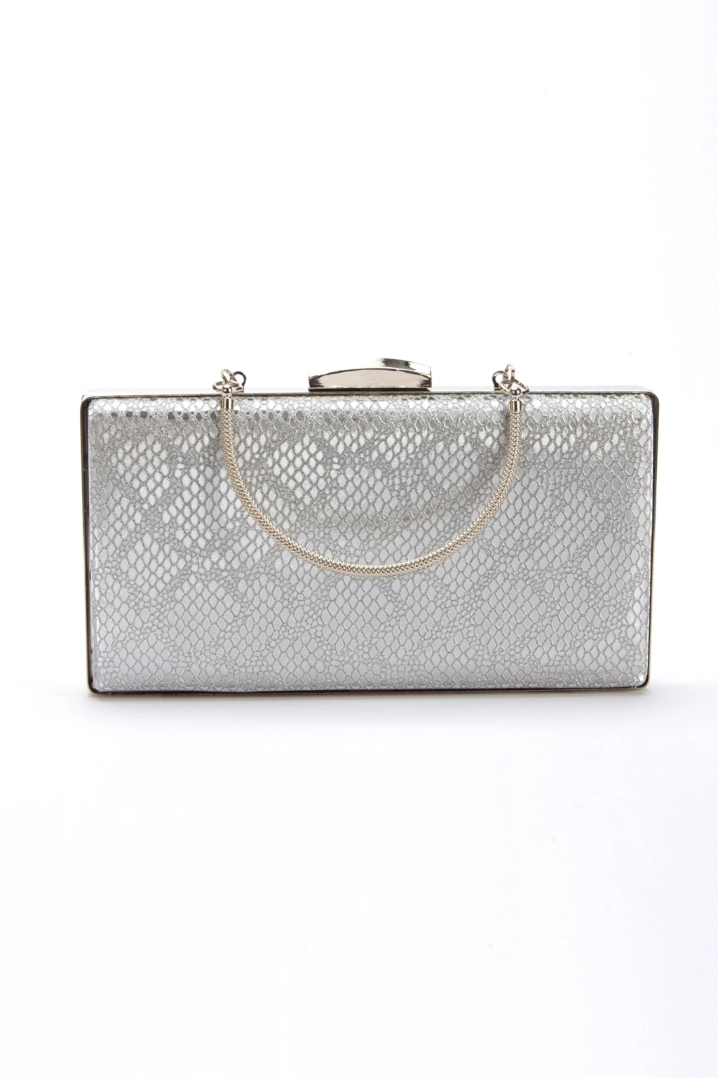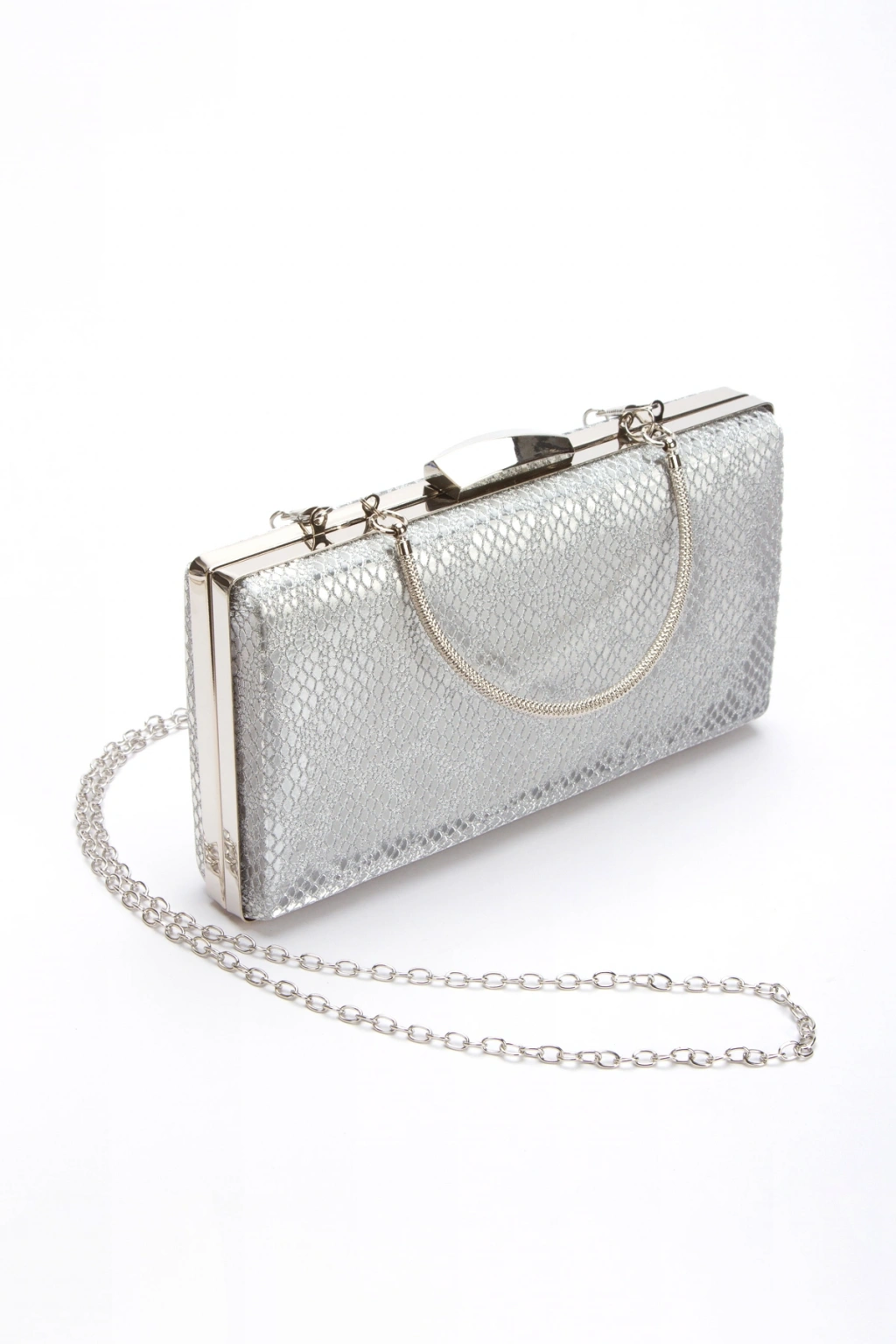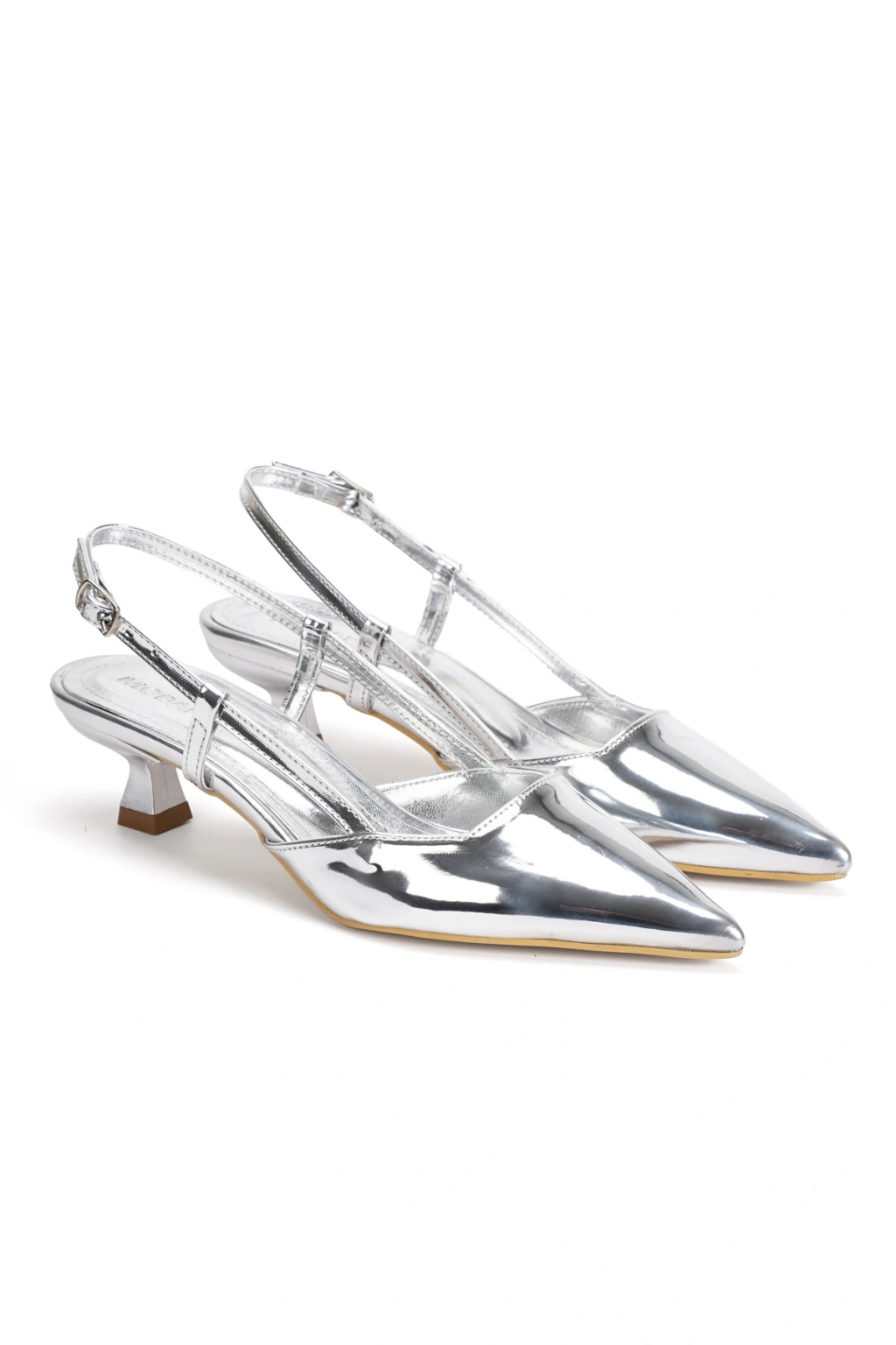 Gümüş Metalik Sivri Burun Alçak Topuklu Kadın Abiye Ayakkabı ve Çanta Takımı