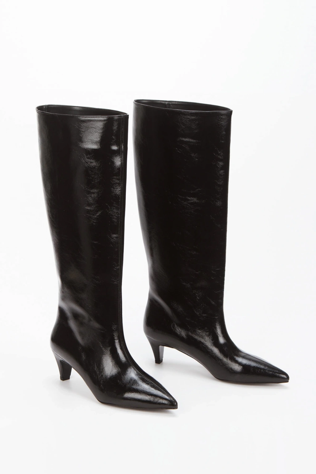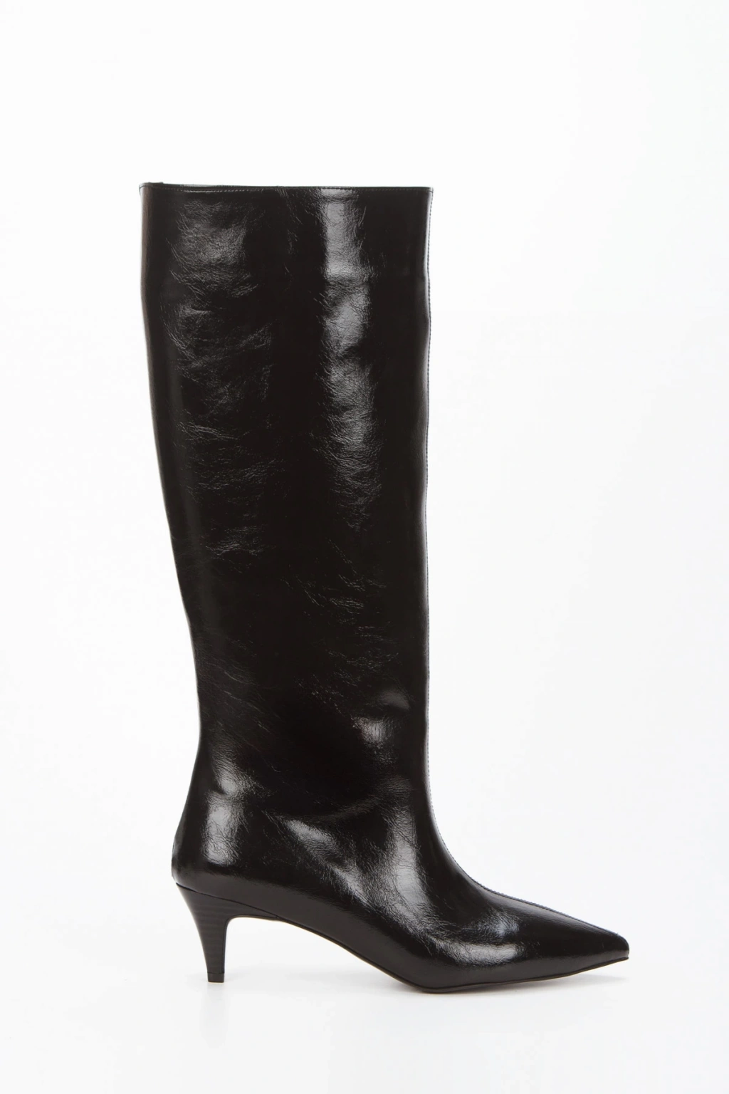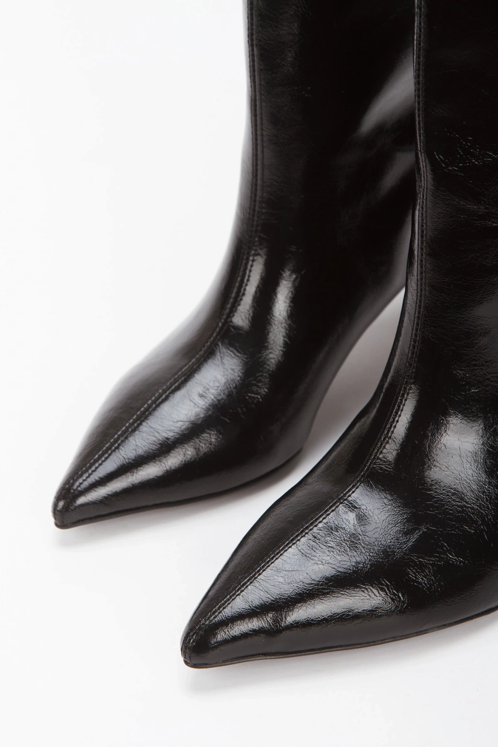 Siyah Rugan Sivri Burunlu İnce Topuklu Çekme Çizme