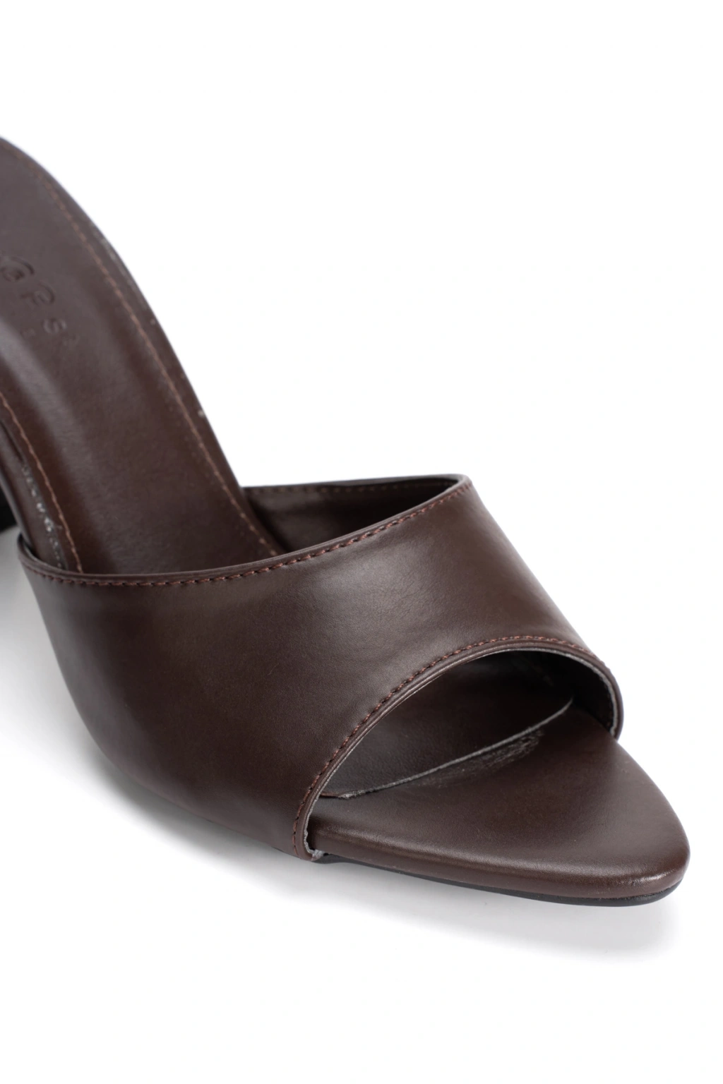 Kahverengi Tek Bantlı Özel Üretim Kalın Topuklu Terlik